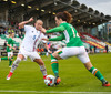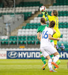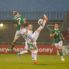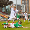 Skrokkar þarna sóknarmann Íra og vinnur markspyrnu.