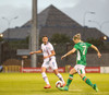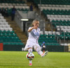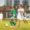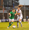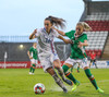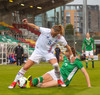 Á flott hlaup framhjá tveimur varnarmönnum og í gegnum tvo polla en Írar ná að stoppa hana áður en hún nær skoti á mark.