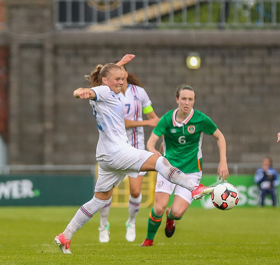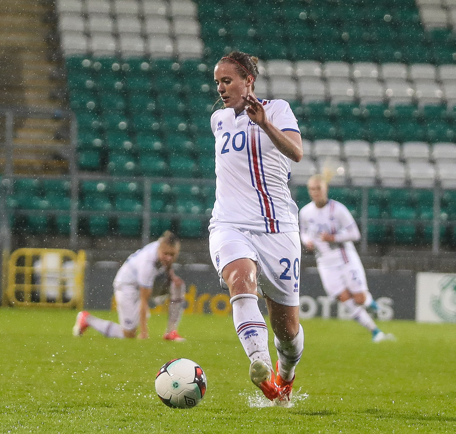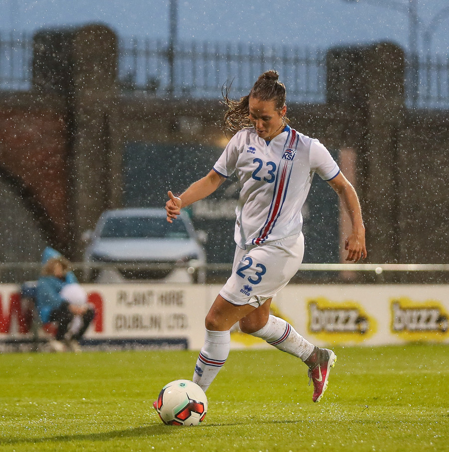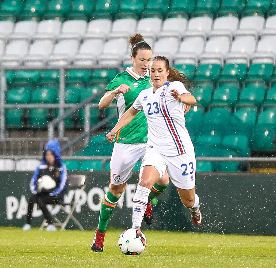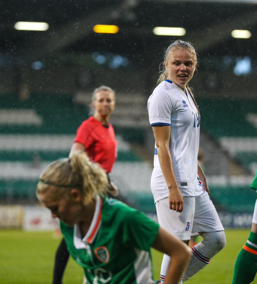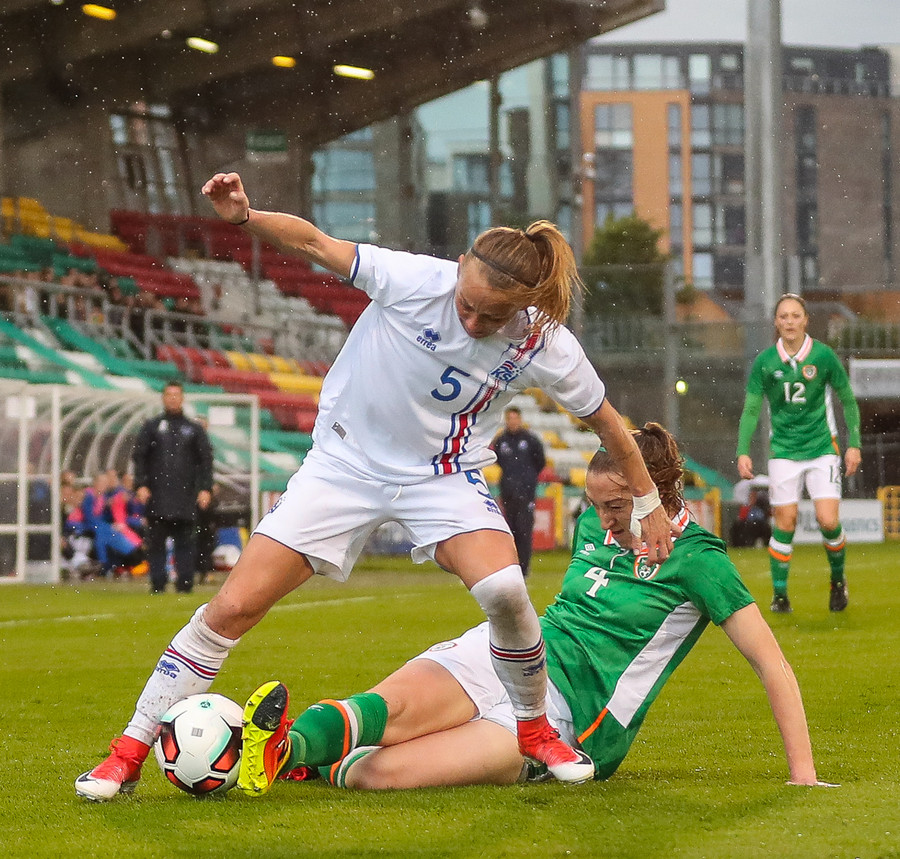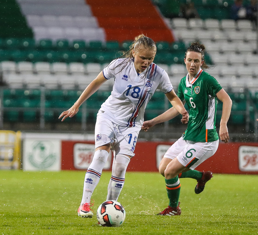 Vel gert Glódís! Stígur fyrir sóknarmann Íra og snýr vörn í sókn.