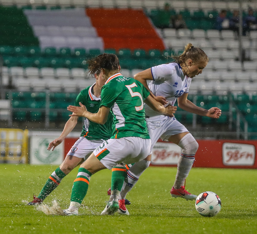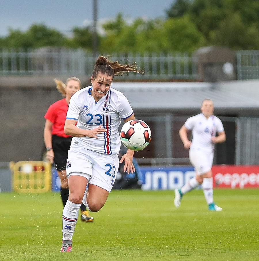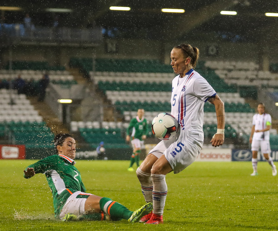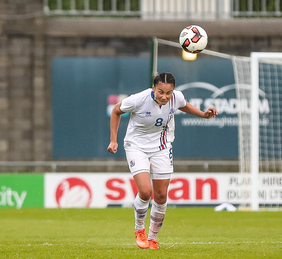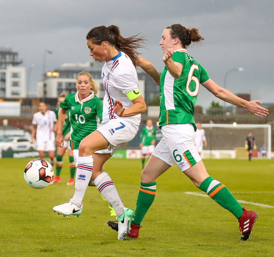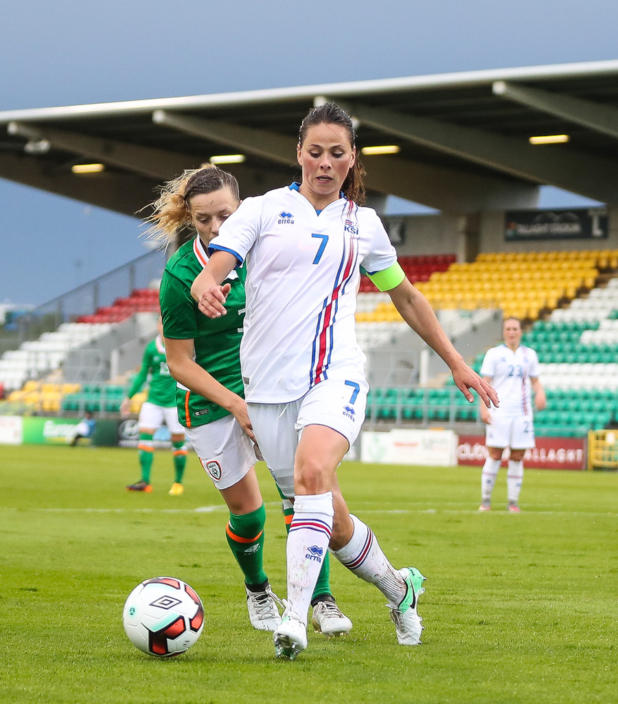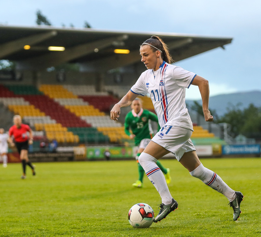 Vel gert Glódís! Stígur fyrir sóknarmann Íra og snýr vörn í sókn.