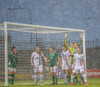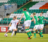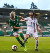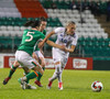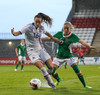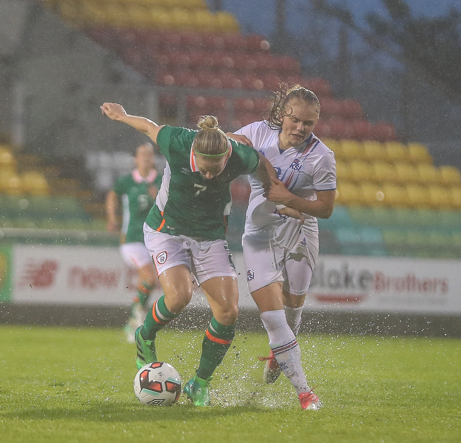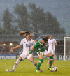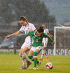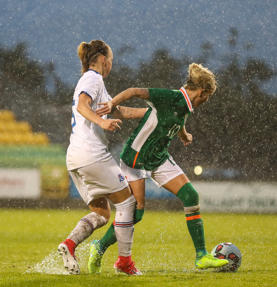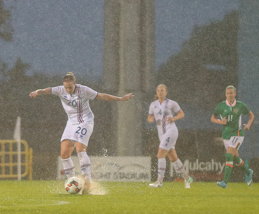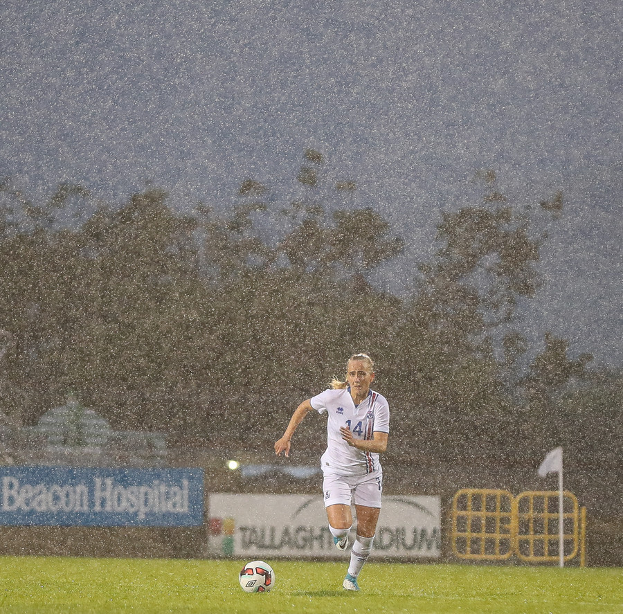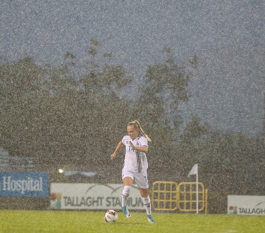 Sókn hjá Írunum. Ég hélt tvisvar að þetta væri að renna út í sandinn þegar boltinn stoppaði í polli en þær djöfluðust áfram og voru nálægt því að ná fyrirgjöf.