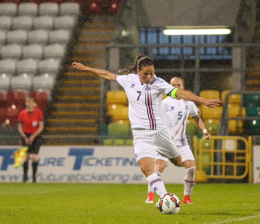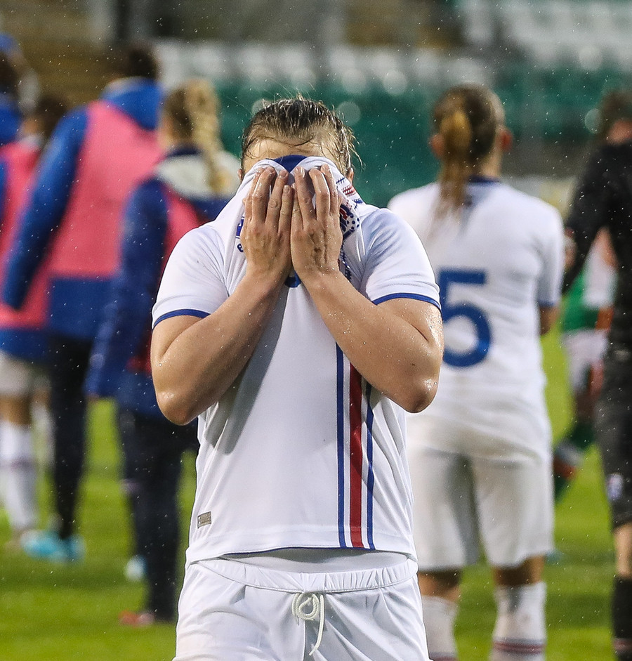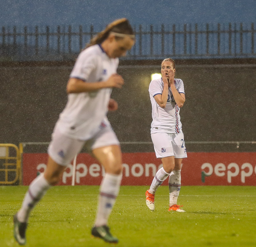 Soft en ágætt að við fáum að njóta vafans. Írar brjóta á Öglu Maríu sirka 22 metrum frá marki og Ísland fær aukaspyrnu. Líklega síðasti séns kvöldsins.