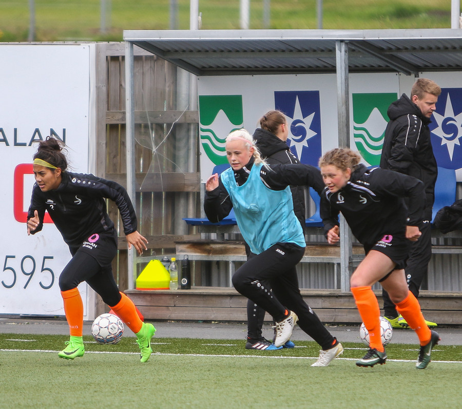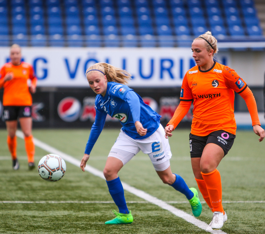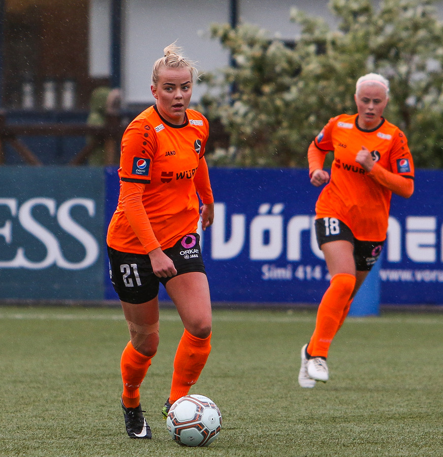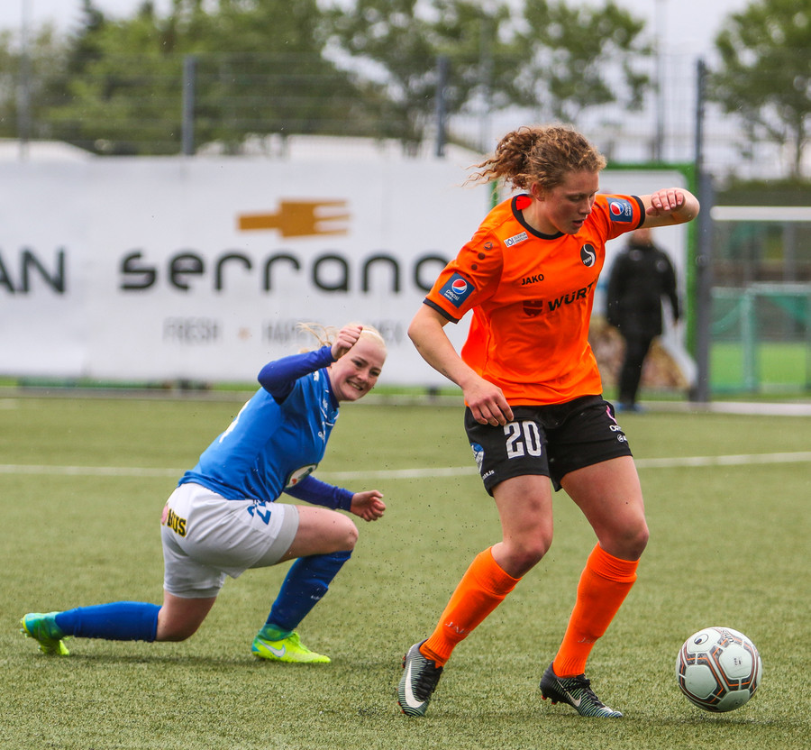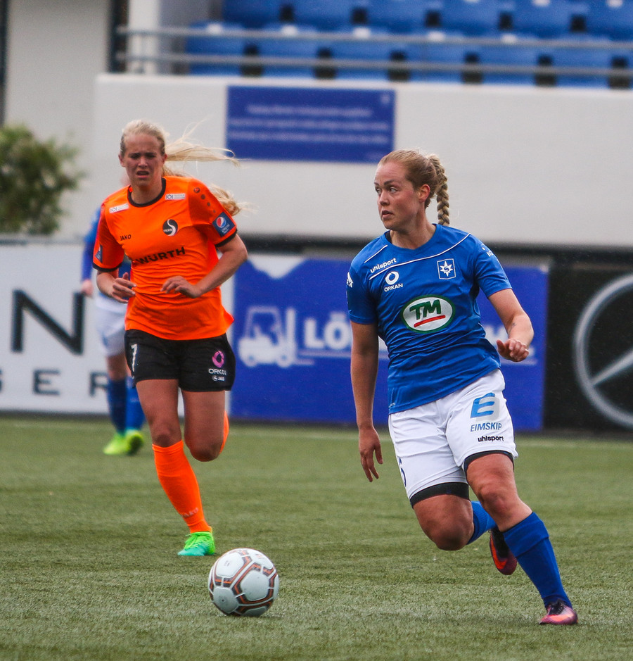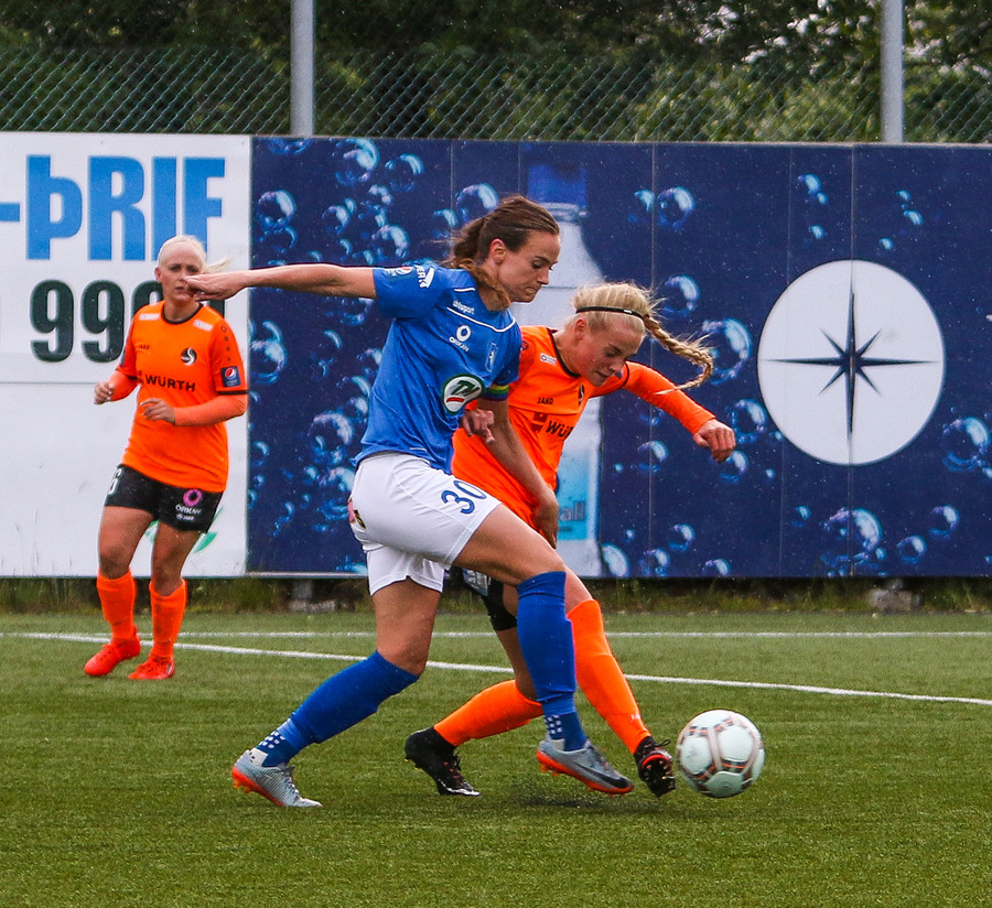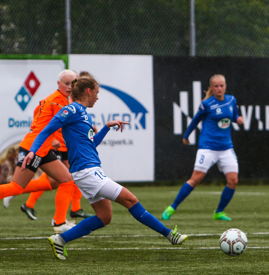 Bryndís með sendingu inn á Sigrúnu sem nær fyrirgjöfinni en skotið frá Katrínu yfir.