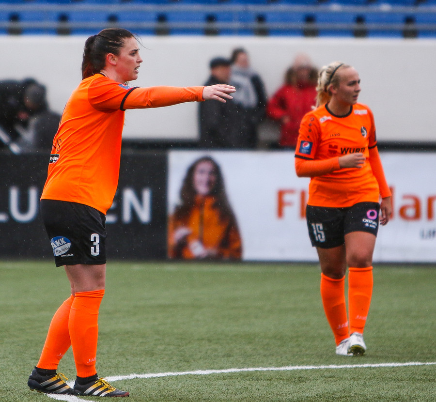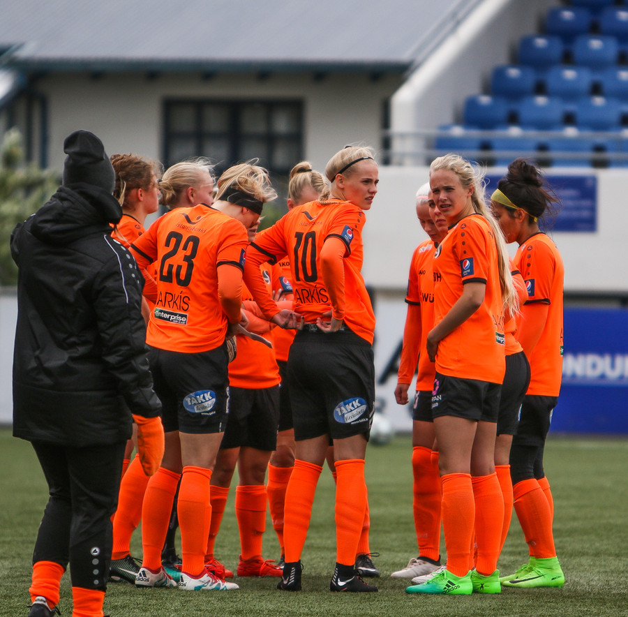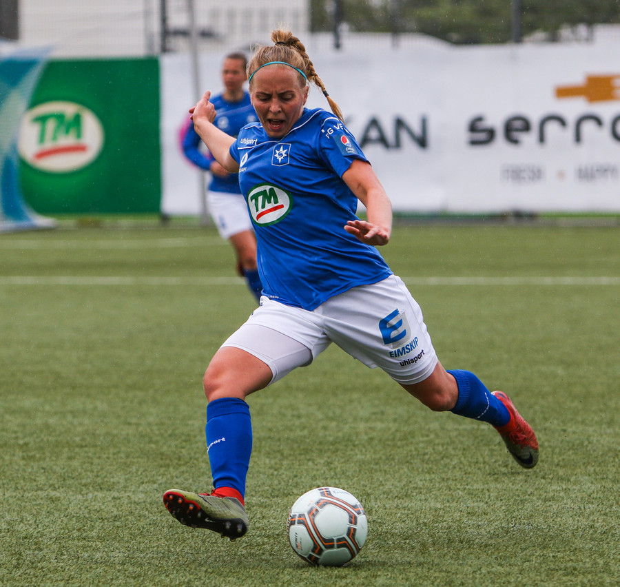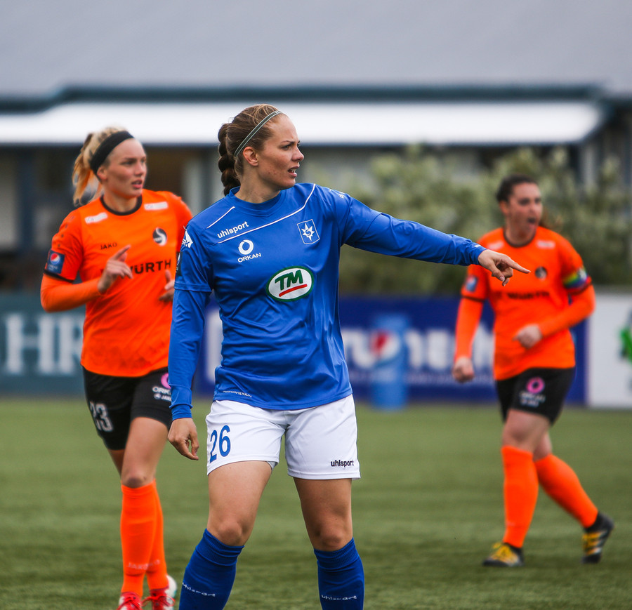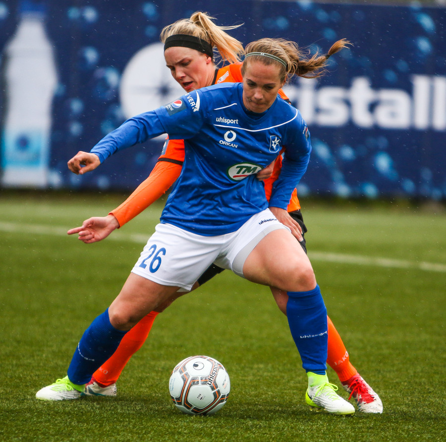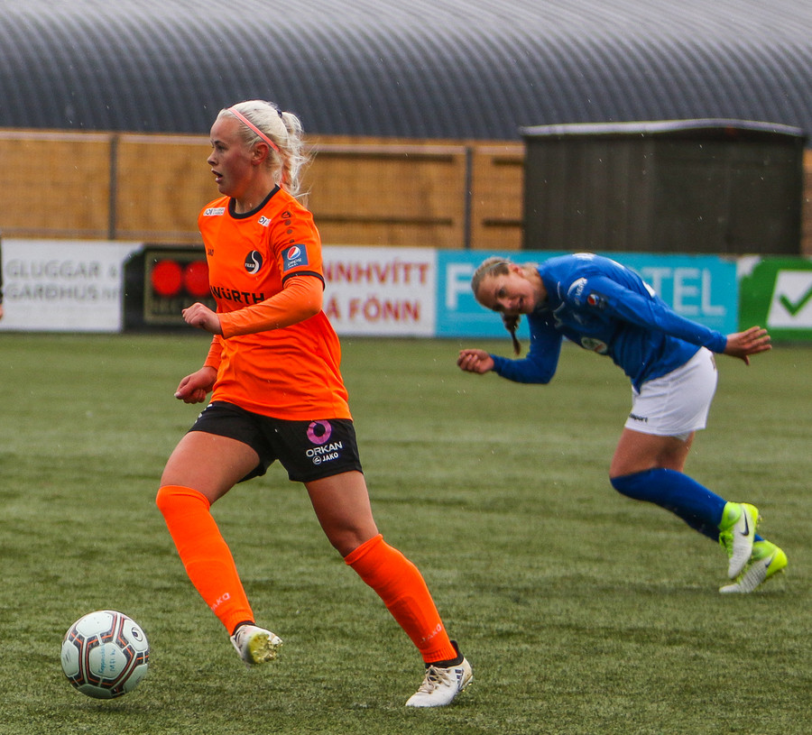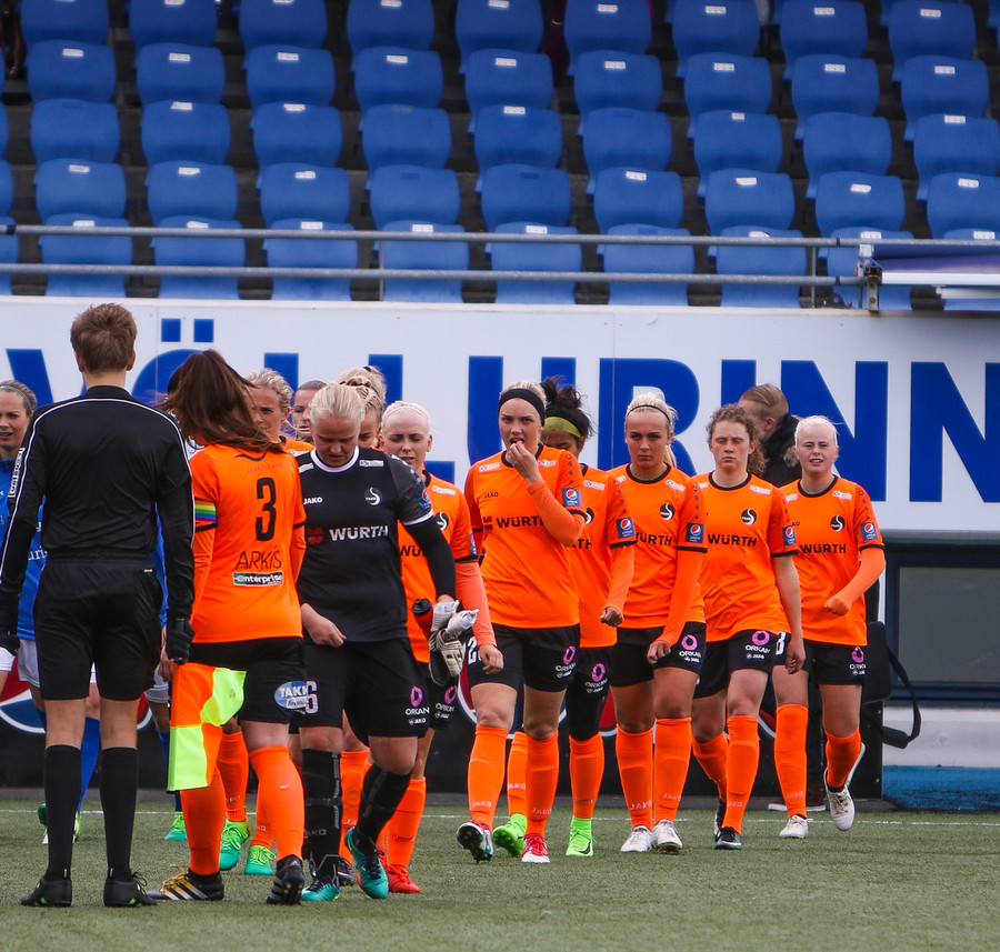 Bryndís með sendingu inn á Sigrúnu sem nær fyrirgjöfinni en skotið frá Katrínu yfir.