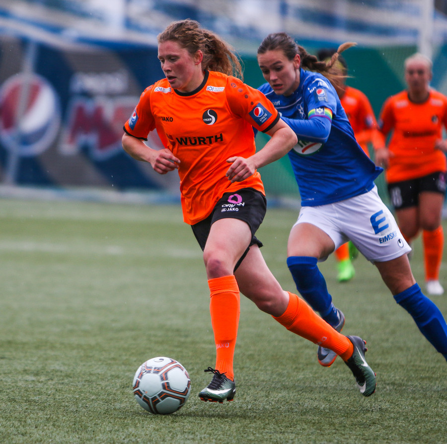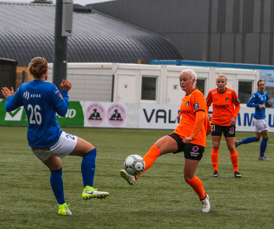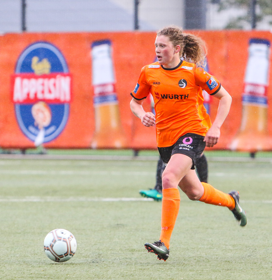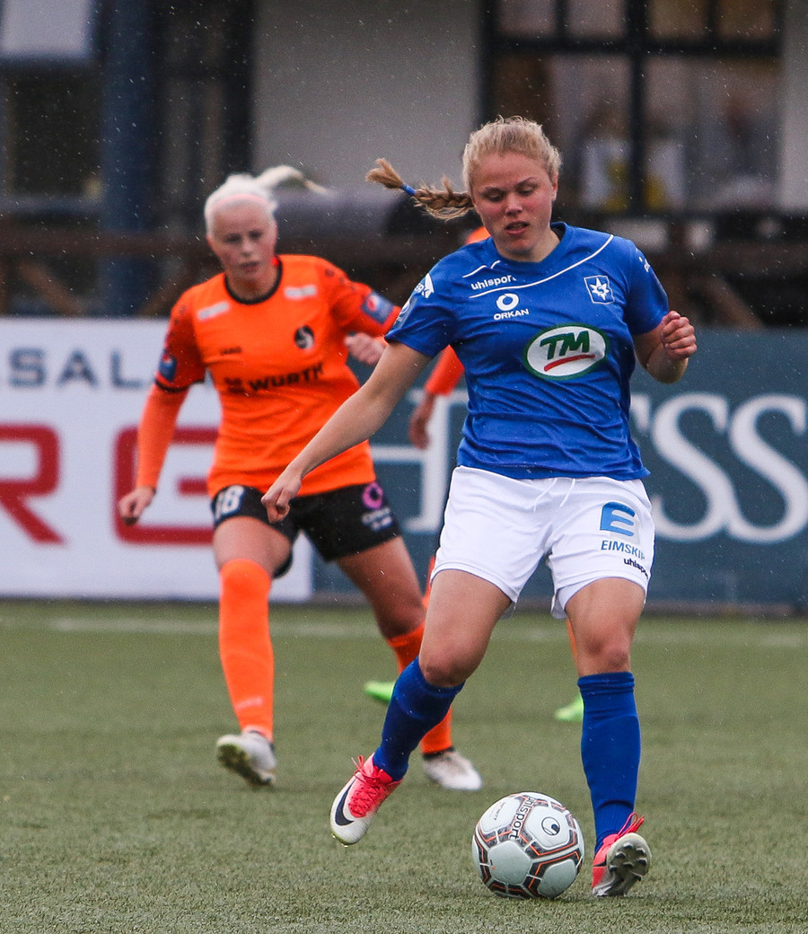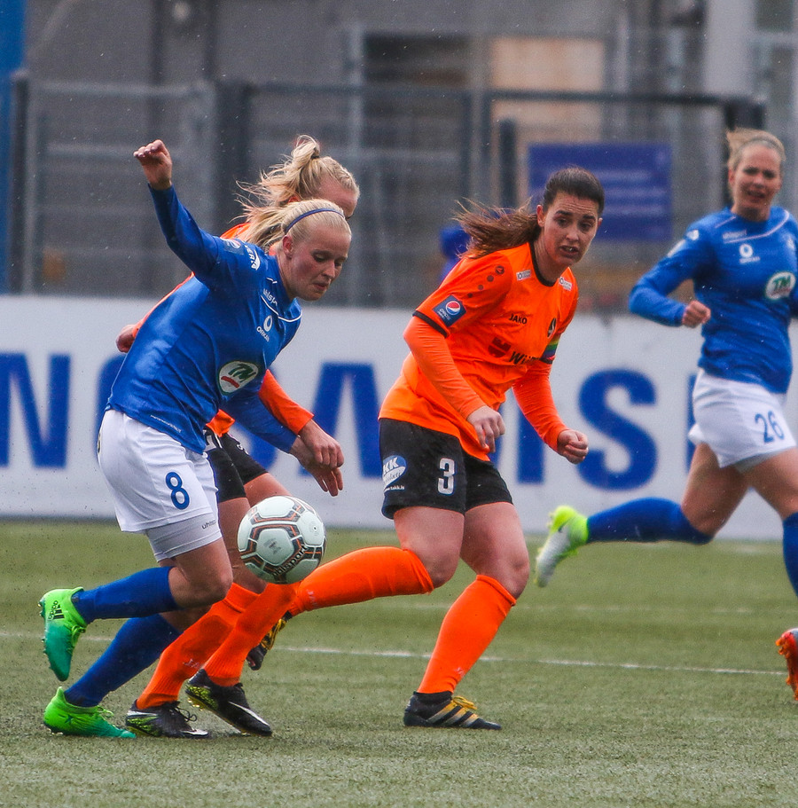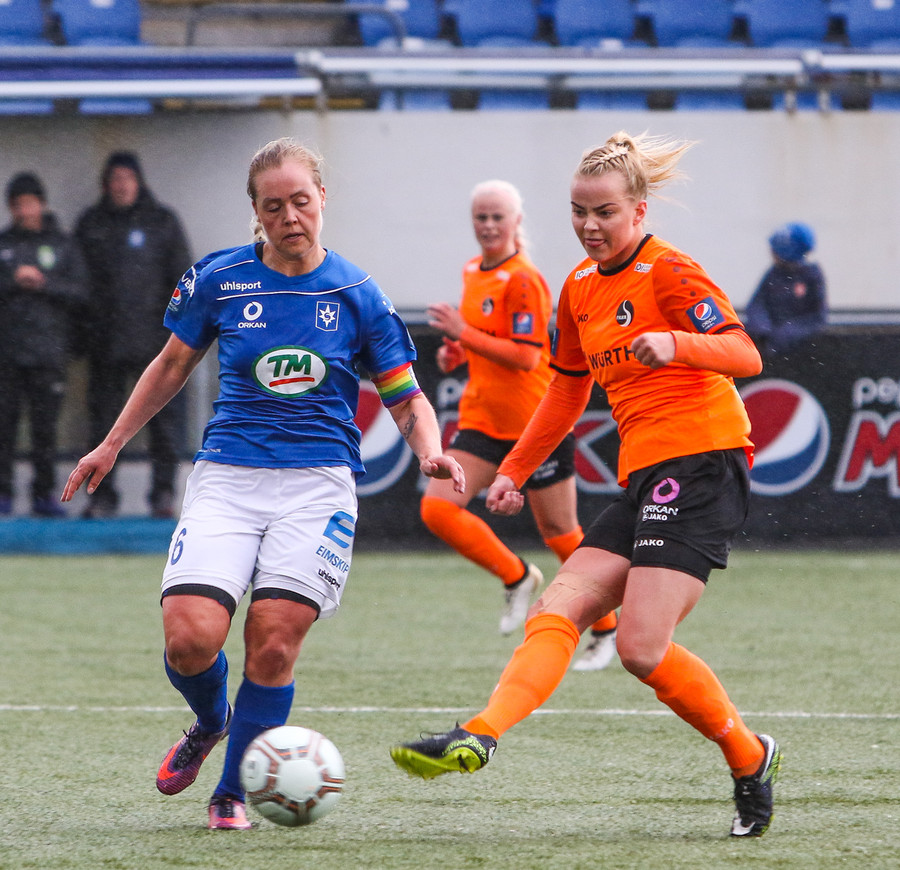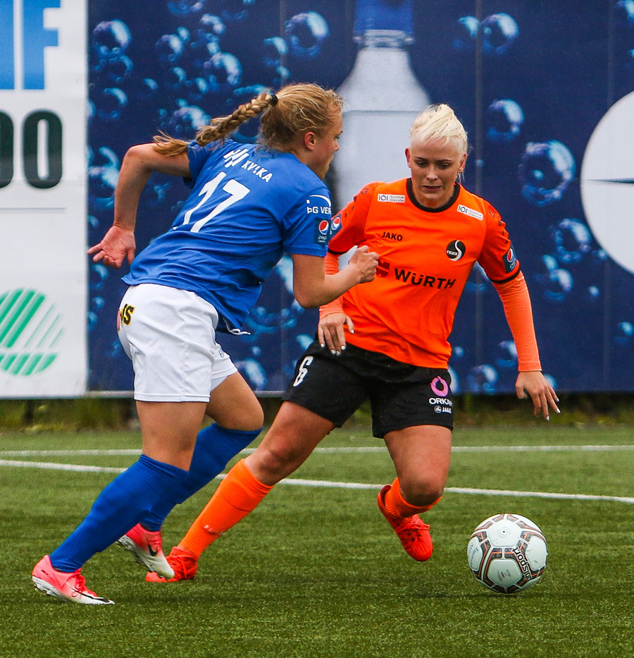 Bryndís með sendingu inn á Sigrúnu sem nær fyrirgjöfinni en skotið frá Katrínu yfir.