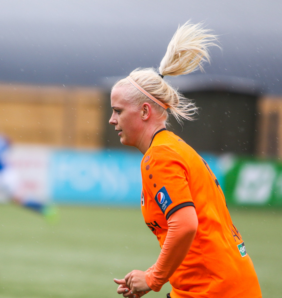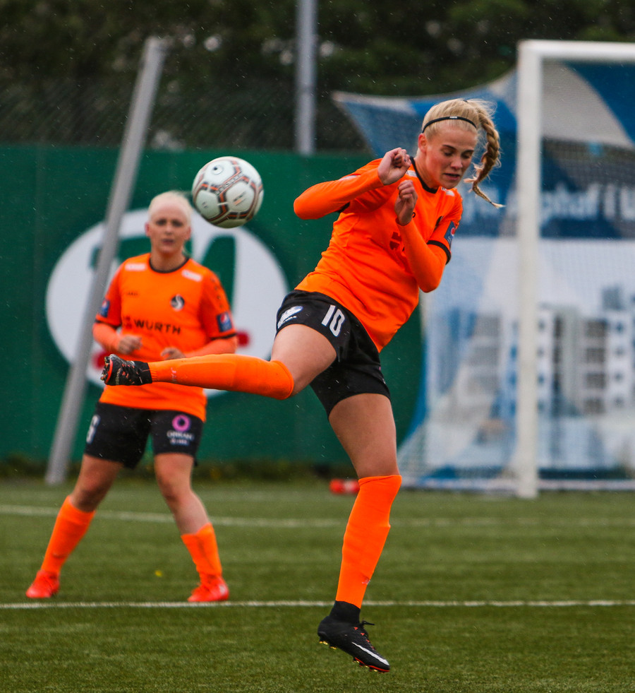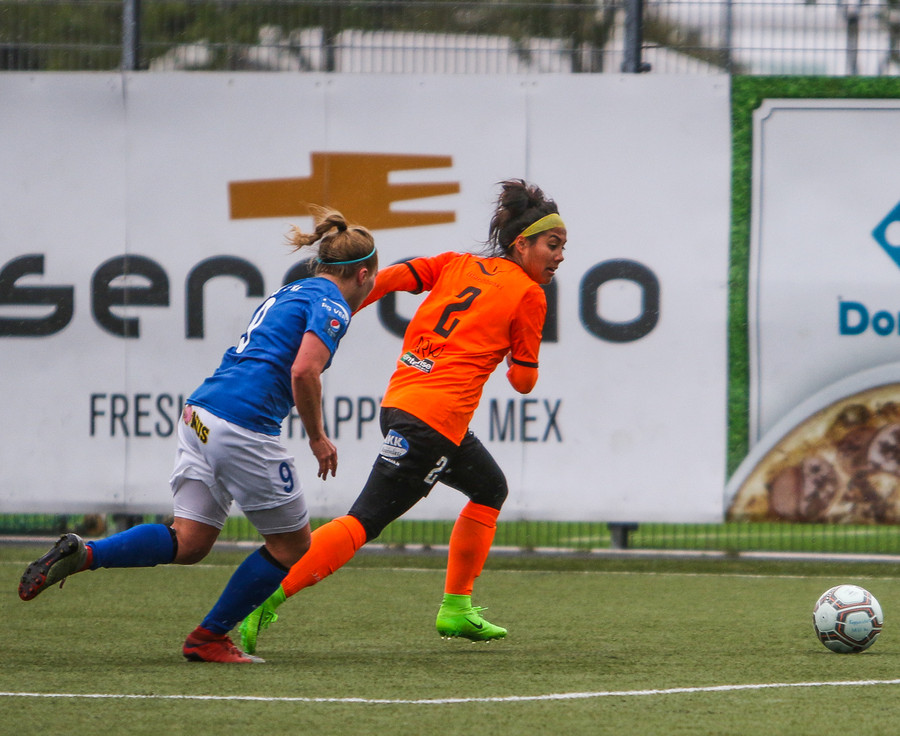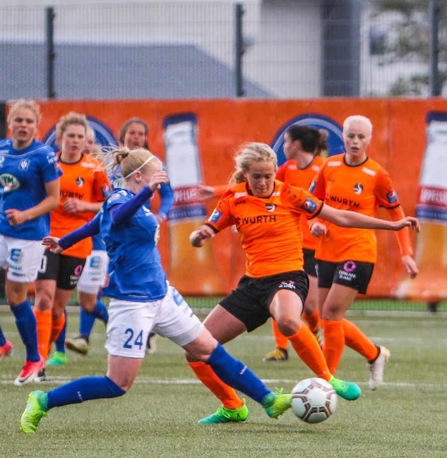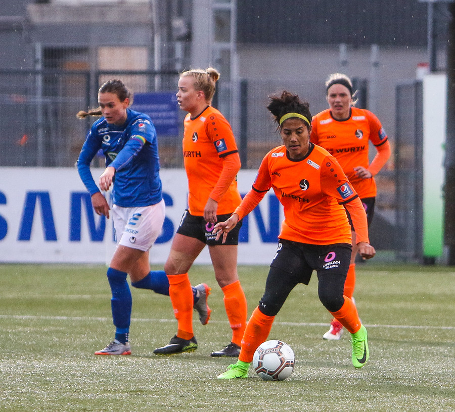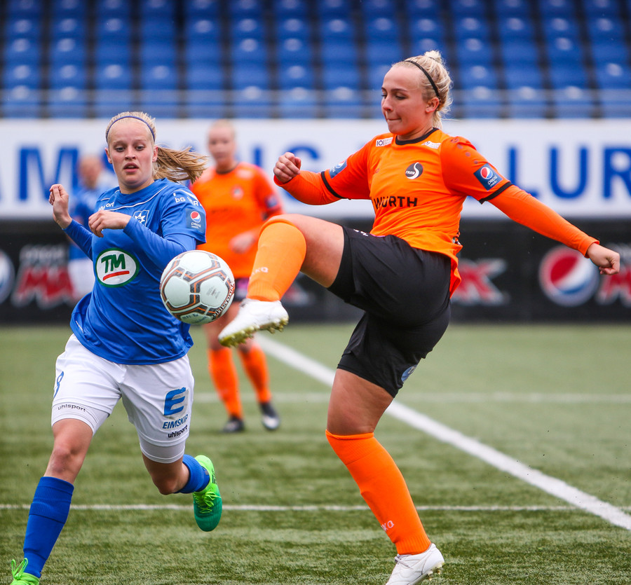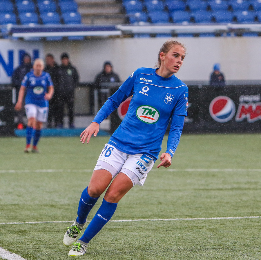 Bryndís með sendingu inn á Sigrúnu sem nær fyrirgjöfinni en skotið frá Katrínu yfir.