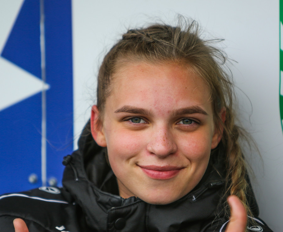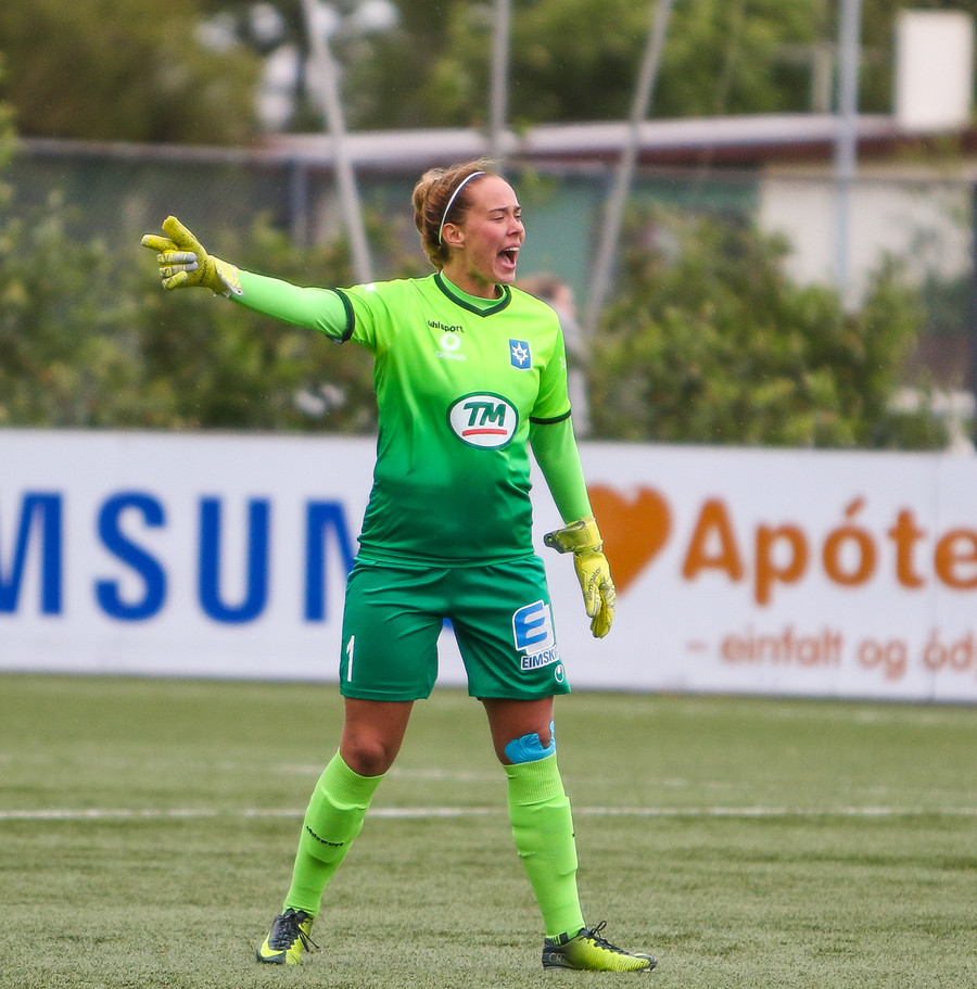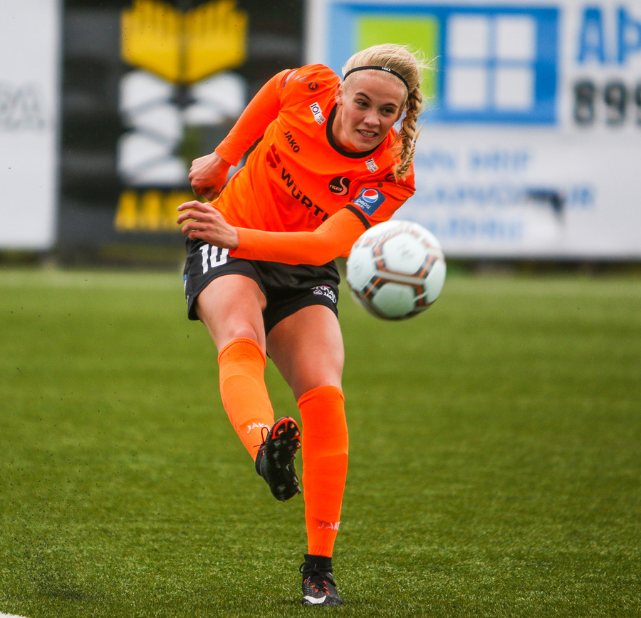 Agla María var að enda við að eiga skot rétt yfir markið.