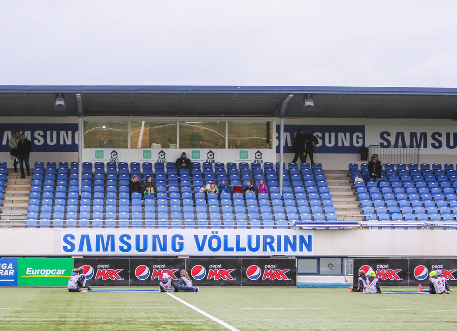 Það er búið að bæta í vindinn en Stjarnan leikur á móti vindi.