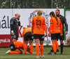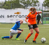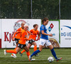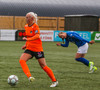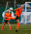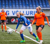 Ásta Vigdís með slaka sendingu út úr markinu sem Sigrún Ella kemst í en skot hennar er yfir markið.