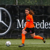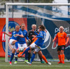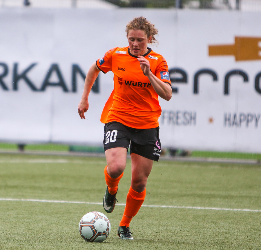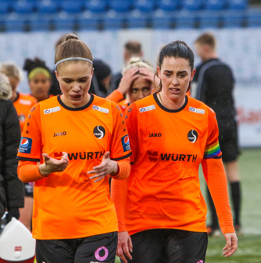 Kristrún með hættulega hornspyrnu en enginn kemst í boltann.