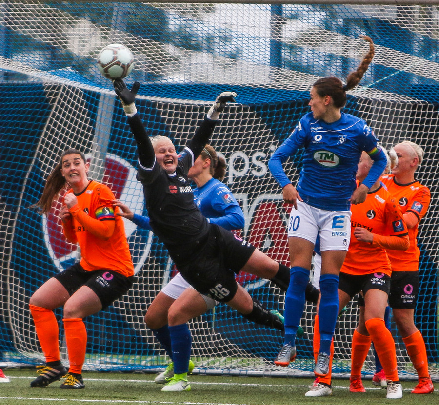 Agla María með fyrirgjöf og Sigrún Ella nær skoti u.þ.b. 3 metrum frá markinu en Ásta ver glæsilega.