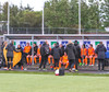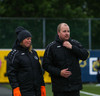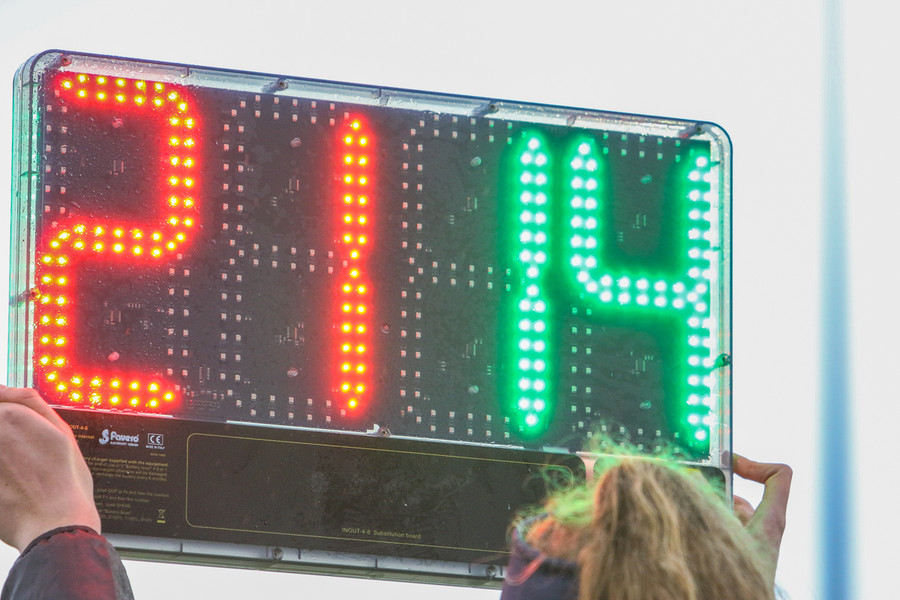 Hornspyrnan nær ekki inn í teig vegna vinds.