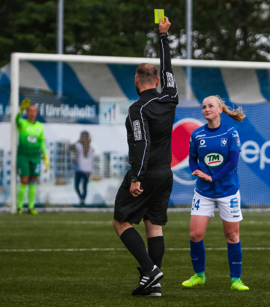 Ísold brýtur aftur á Hörpu, núna aðeins fjær teignum en Stjarnan fær aukaspyrnu.