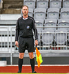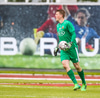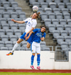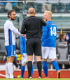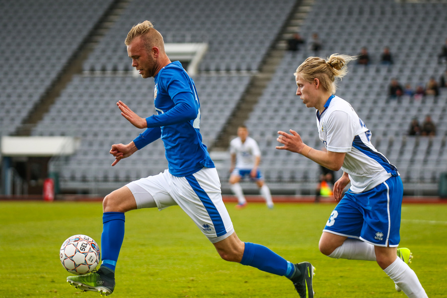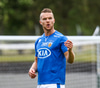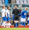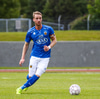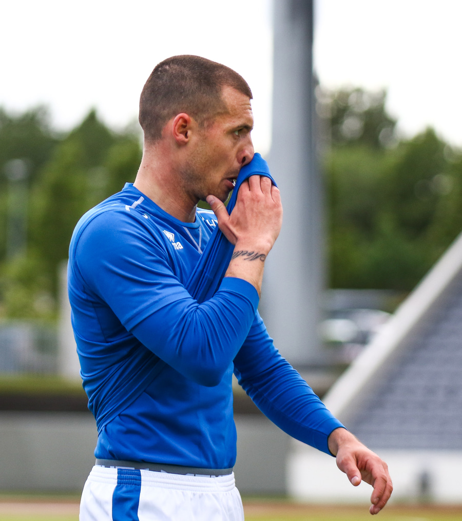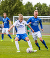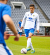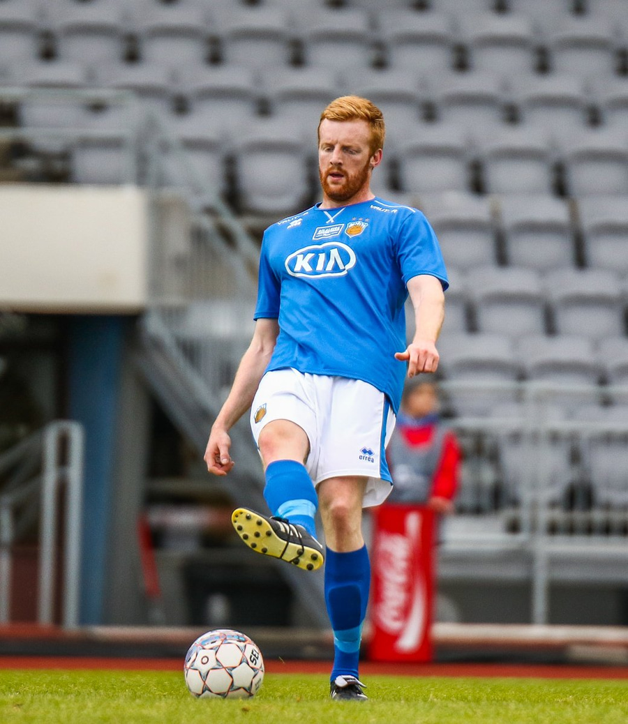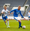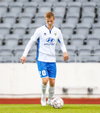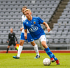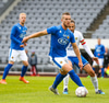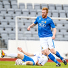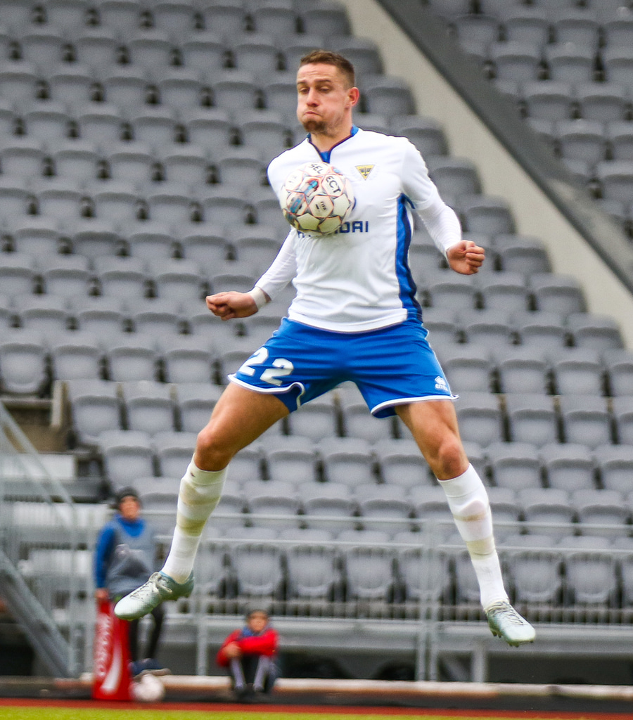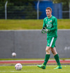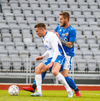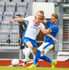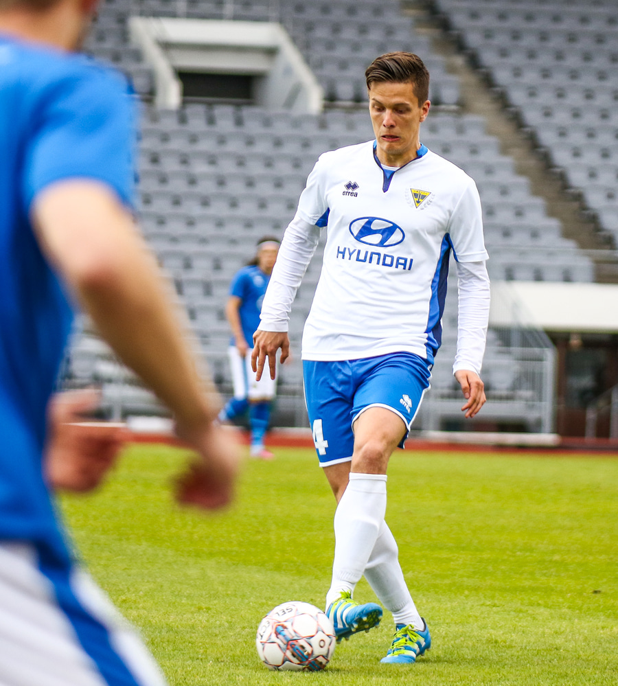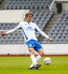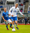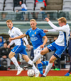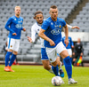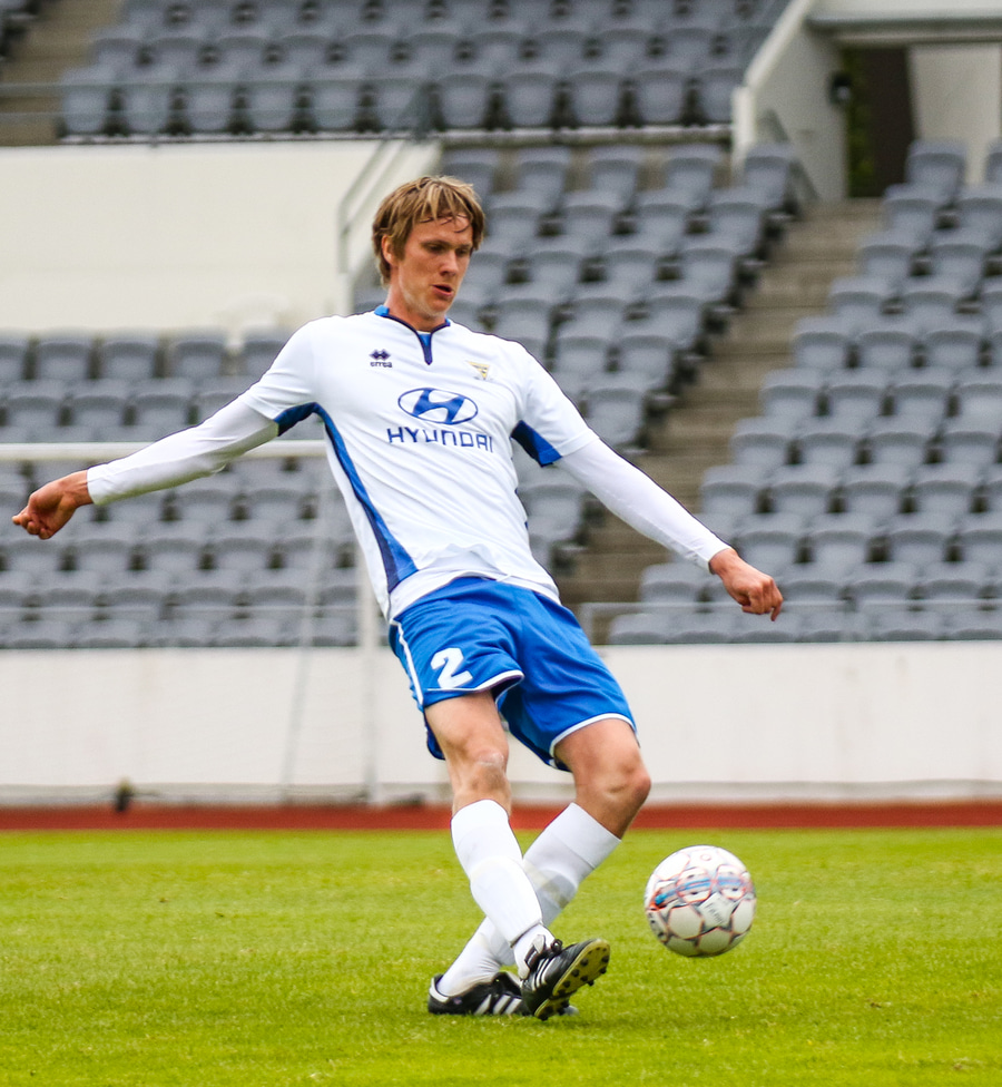 Sigurpáll Melberg fyrirliði með fyrirgjöf en Alexander Kostic bjargar í horn. Ekkert merkilegt kemur úr horninu.