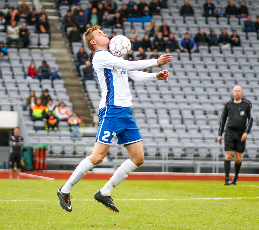 Helgi Guðjónsson með stórskemmtileg tilþrif! Vel gert hjá stráknum, fíflar tvo varnarmenn Gróttu í teignum með því að fara á milli þeirra og vinnur hornspyrnu.