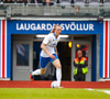 Það eru Gróttumenn sem hófu leik á því að taka skot. Ingólfur Sigurðsson, fyrrum leikmaður Fram, lét vaða en skotið kraftlítið. Grótta sækir í átt að Laugardalslauginni.