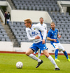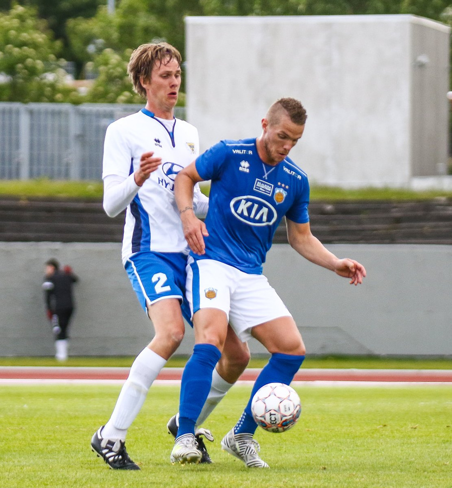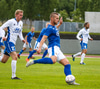 DAUÐAFÆRI!!! Helgi Guðjónsson í dauðafæri! Gummi Magg flikkaði boltanum inn á Helga sem fór framhjá markverðinum en Alexander Kostic náði á endanum að bjarga á línu!