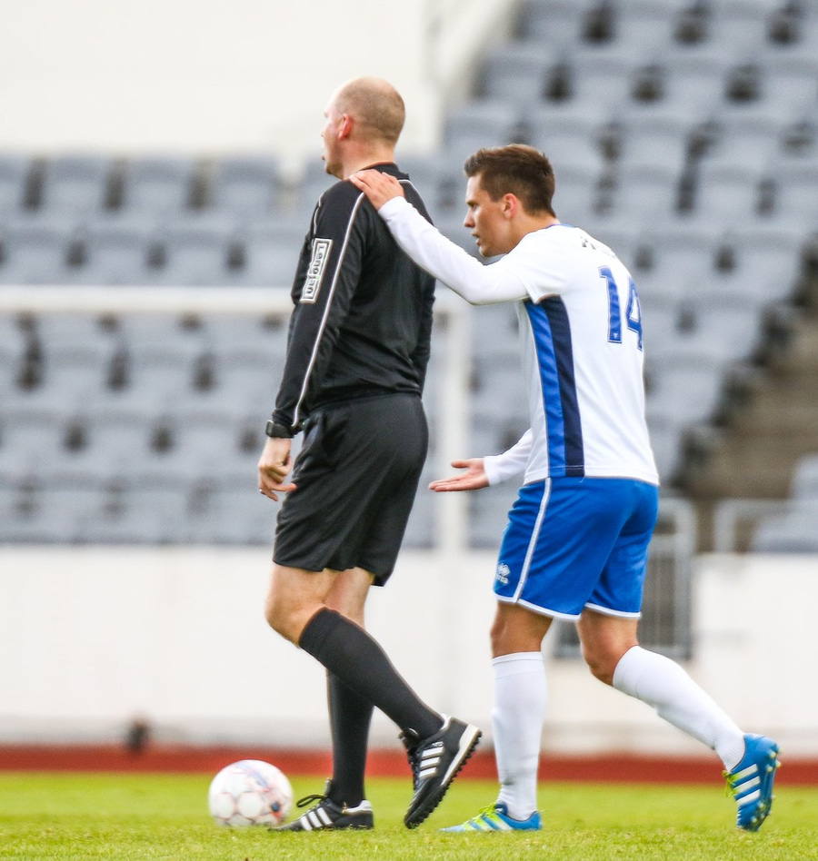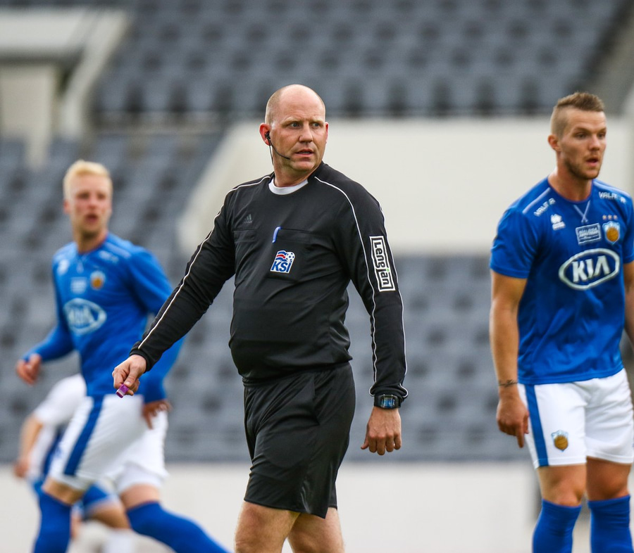 Atli Gunnar markvörður í tómu tjóni! Kom út úr markinu en náði ekki til boltans og Viktor Smári Segatta skaut yfir markið. Atli heppinn að vera ekki refsað þarna.