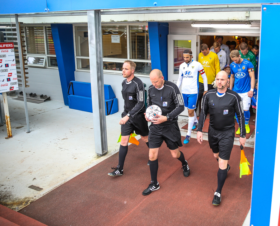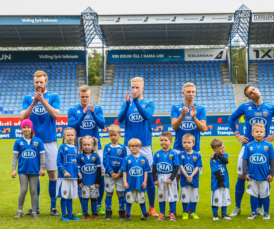 Valtýr Björn Valtýsson vallarþulur er búinn að kynna liðin. Þá fer þetta að byrja... vonandi fáum við hressandi leik.