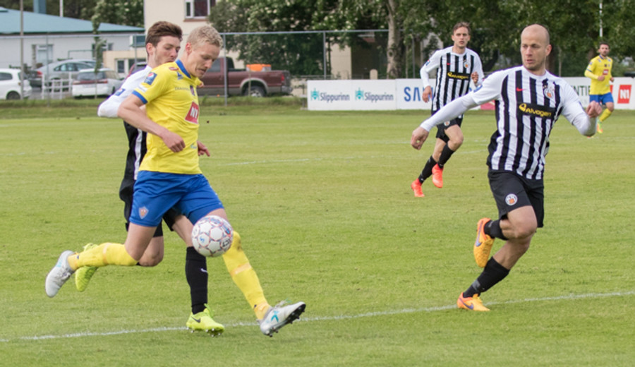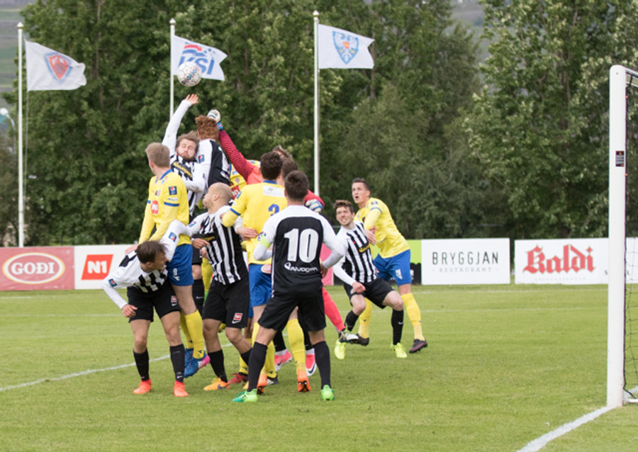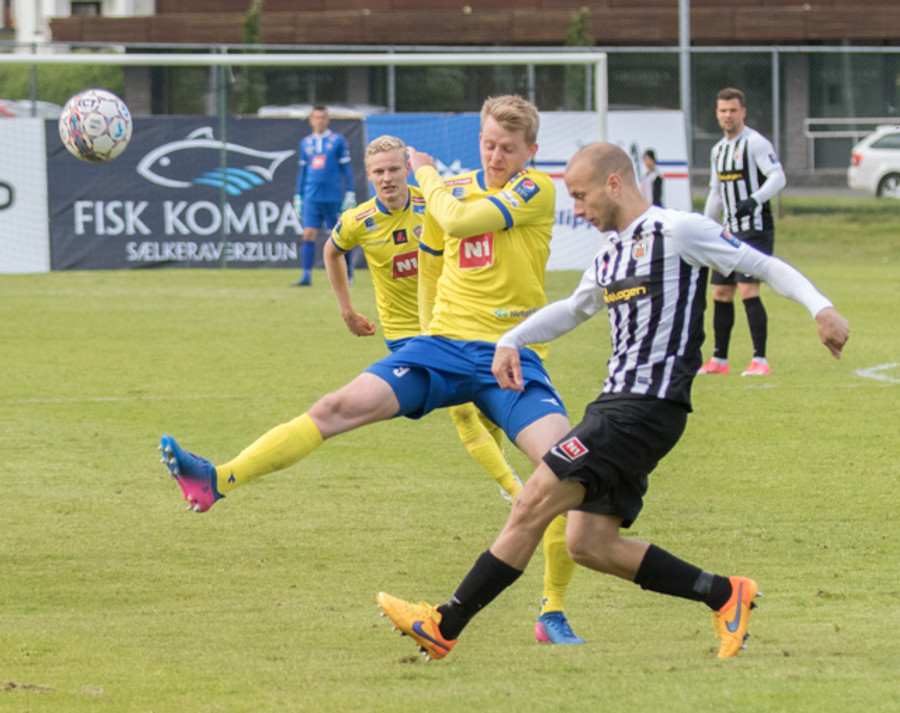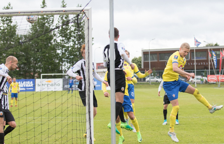 Það er líf í þessum leik! Grímsi fær aukaspyrnu á fínum stað úti á kanti sem hann skýtur sjálfur úr og Beitir slær í horn. Grímsi tekur hornið inná teig og Pálmi Rafn flikkar honum yfir á fjær þar sem Elfar stangar hann inn! Þetta verða fjörugar lokamínútur!
