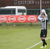 Beitir grípur fyrirgjöf og byrjar síðan að kveinka sér og kastar boltanum í innkast við litla hrifningu KA-manna. Sækir nokkrar sekúndur núna.