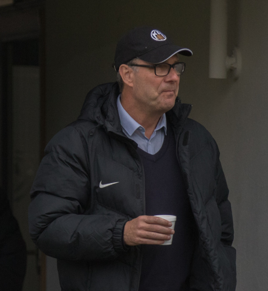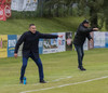 Óskar Bragason aðstoðarþjálfari KA-manna sendur uppí stúku fyrir kjaft við dómara leiksins.