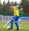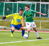 Hewson vinnur boltann framarlega og stingur honum inn í teiginn hægra megin þar sem Aron Freyr er aleinn en skot hans er framhjá.