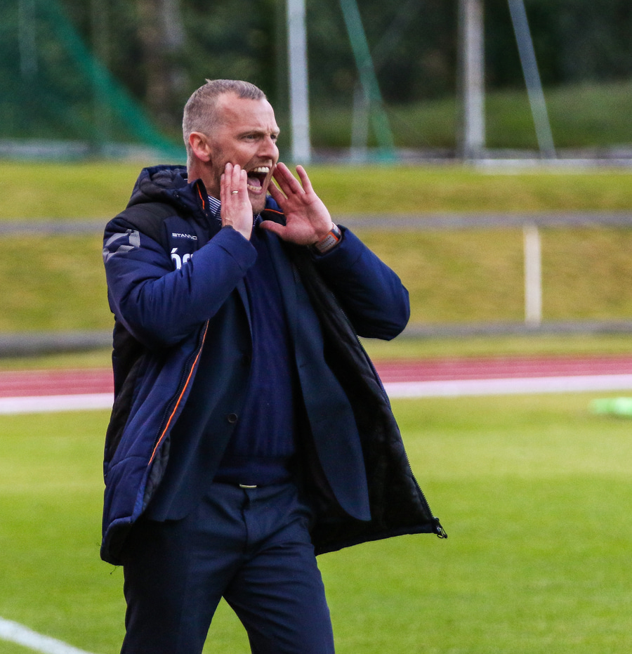 Óli Stefán akbrjálaður út í einbeitingarleysi sinna manna.