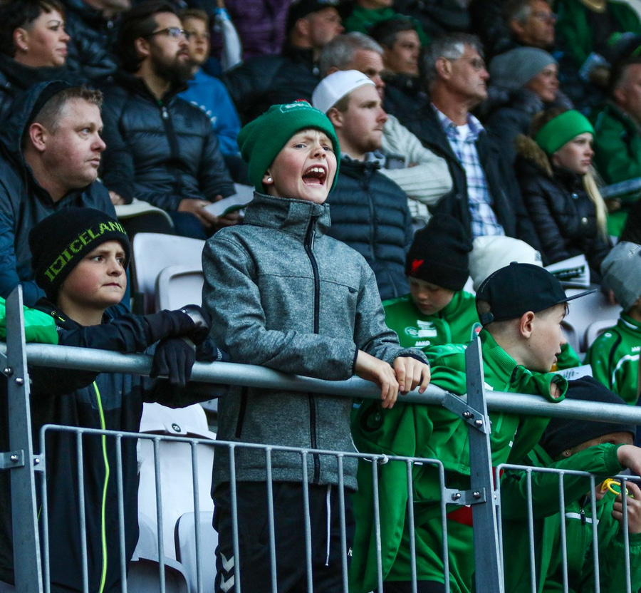 Bæði lið á leið í klefann fyrir lokahnykkinn. Stuðningsmenn beggja liða eru býsna bjartsýnir að heyra.
