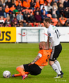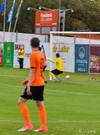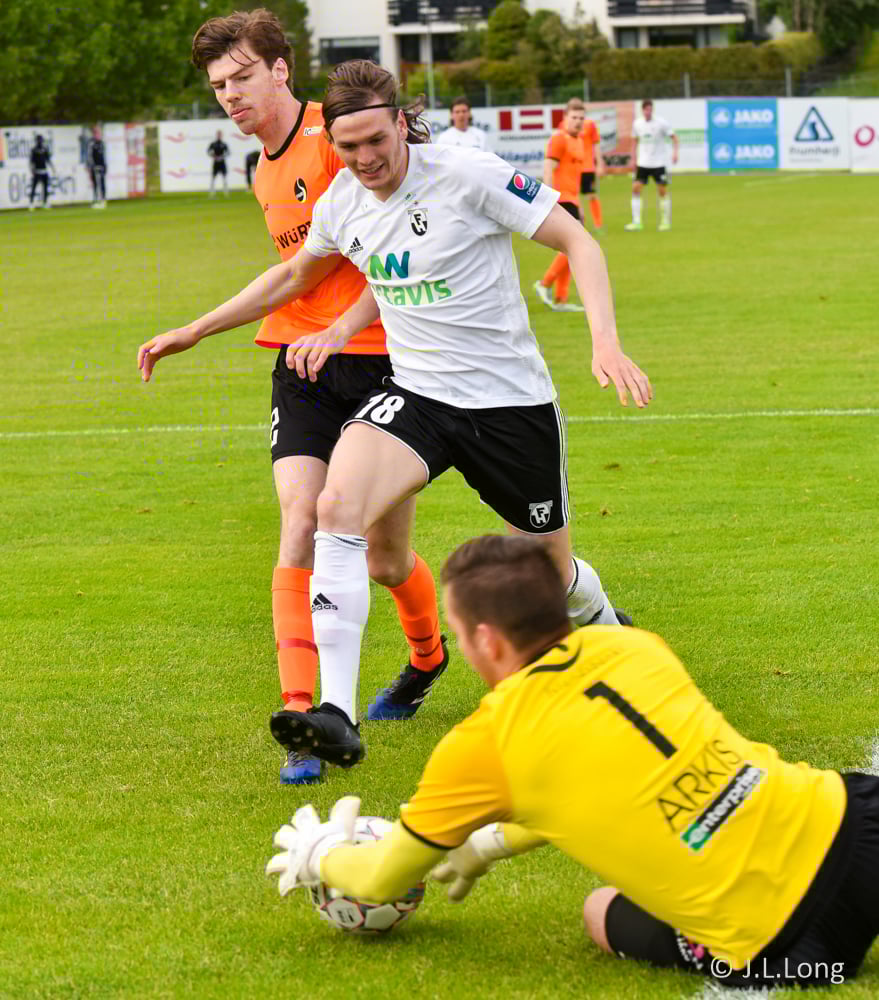 Arnar Már grátlega nálægt því að pota boltanum framhjá Vigni í markinu. Það kom langur bolti fram og Arnar rétt náði að komast í hann en Vignir brást vel við og varði.