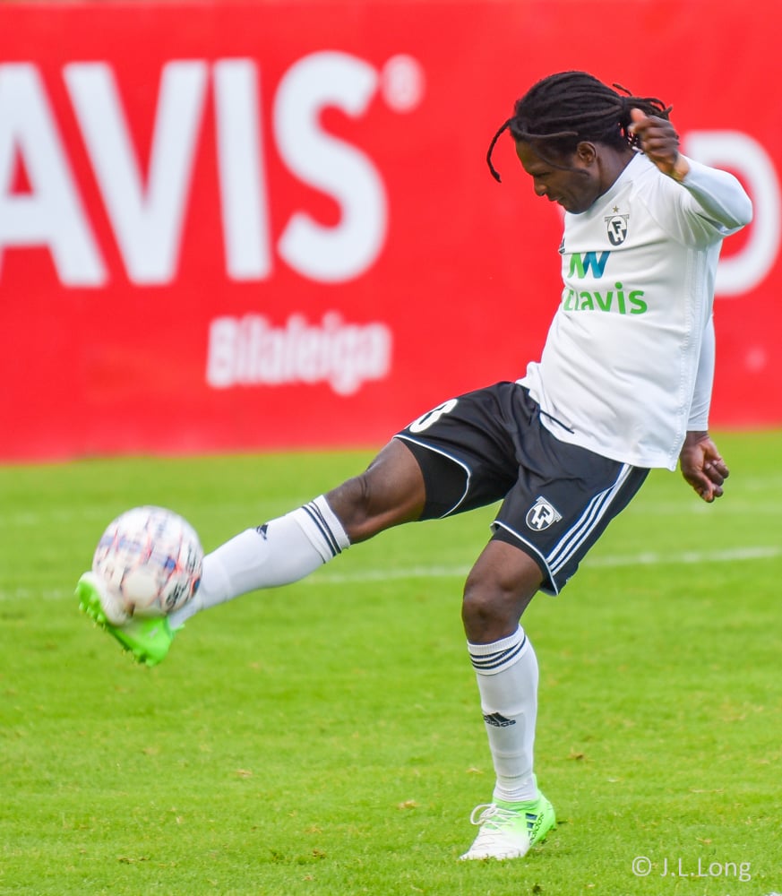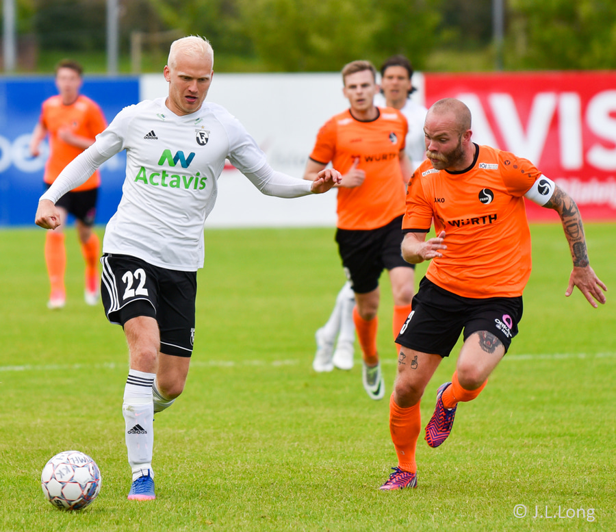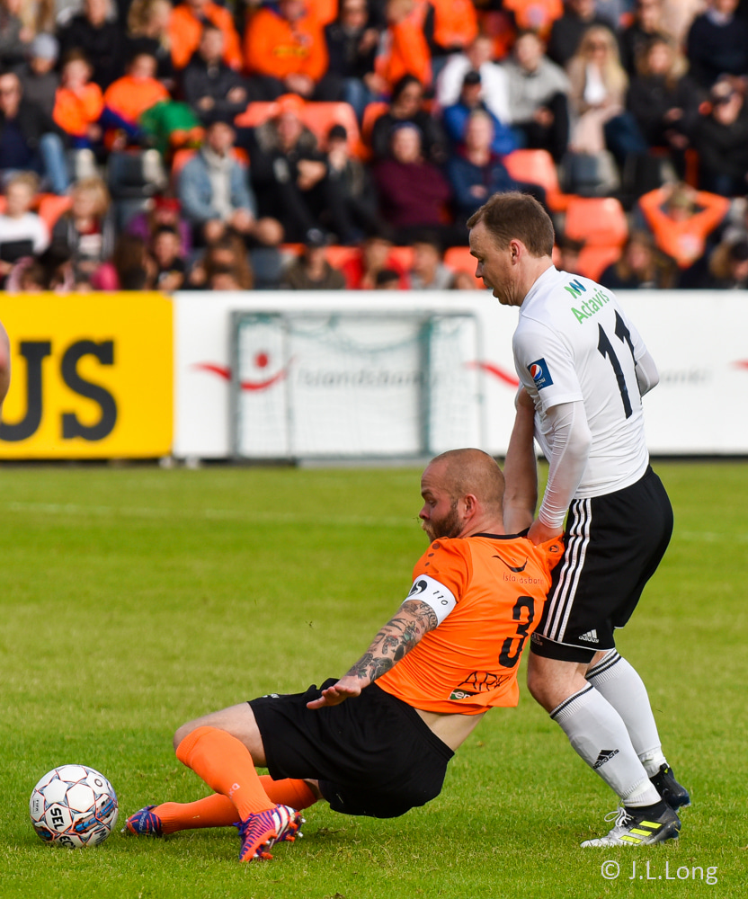 Davíð Þór Viðars lendir á vegg á miðsvæðinu. Ásgeir Börkur fær hann á sig og stendur þarna eins og hann sé nýsteyptur.