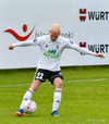 Emil Ásmunds með skrítna sendingu í átt að skilti sem stendur ,,Taktu flugið". Það hefur sjálfsagt truflað hann eitthvað, því það var enginn Fylkismaður þarna.