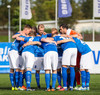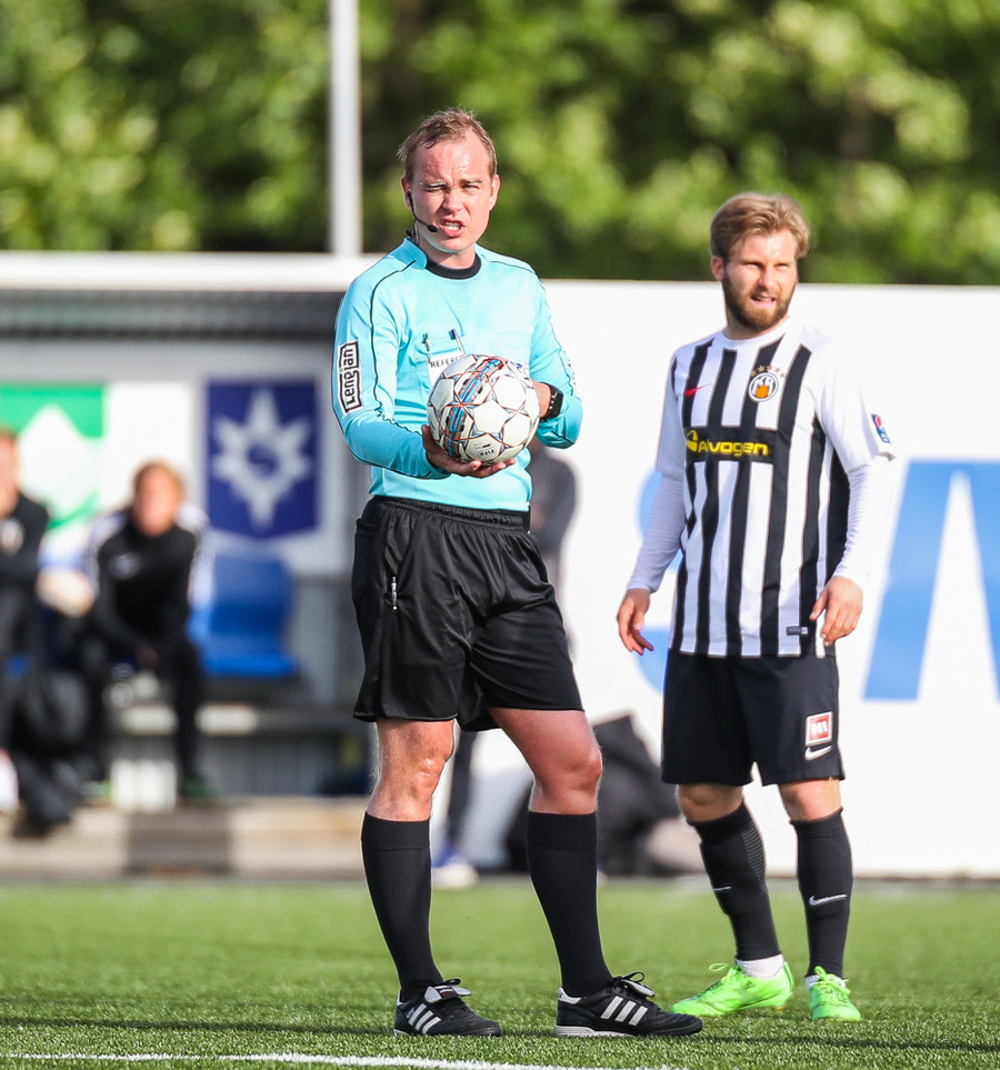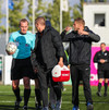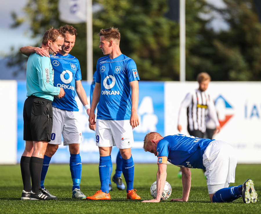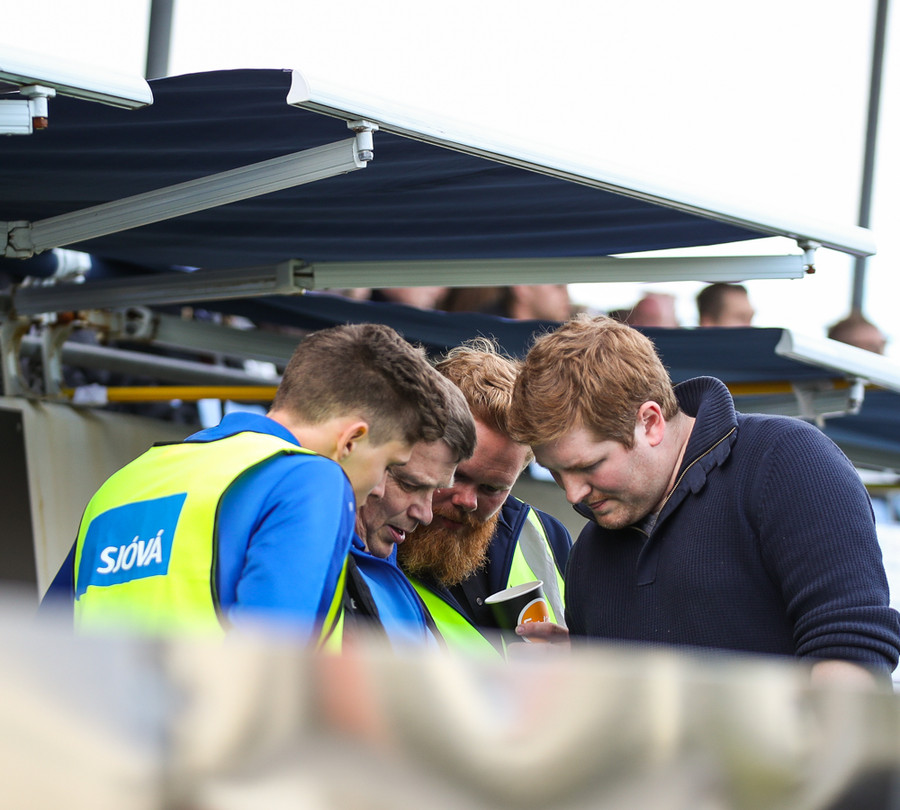 Liðin eru komin á völlinn og allt að verða klárt í að Þorvaldur Árnason flauti til leiks. AD1 er Frosti Viðar Gunnarsson og AD2 er Gunnar Helgason, ekki leikari.