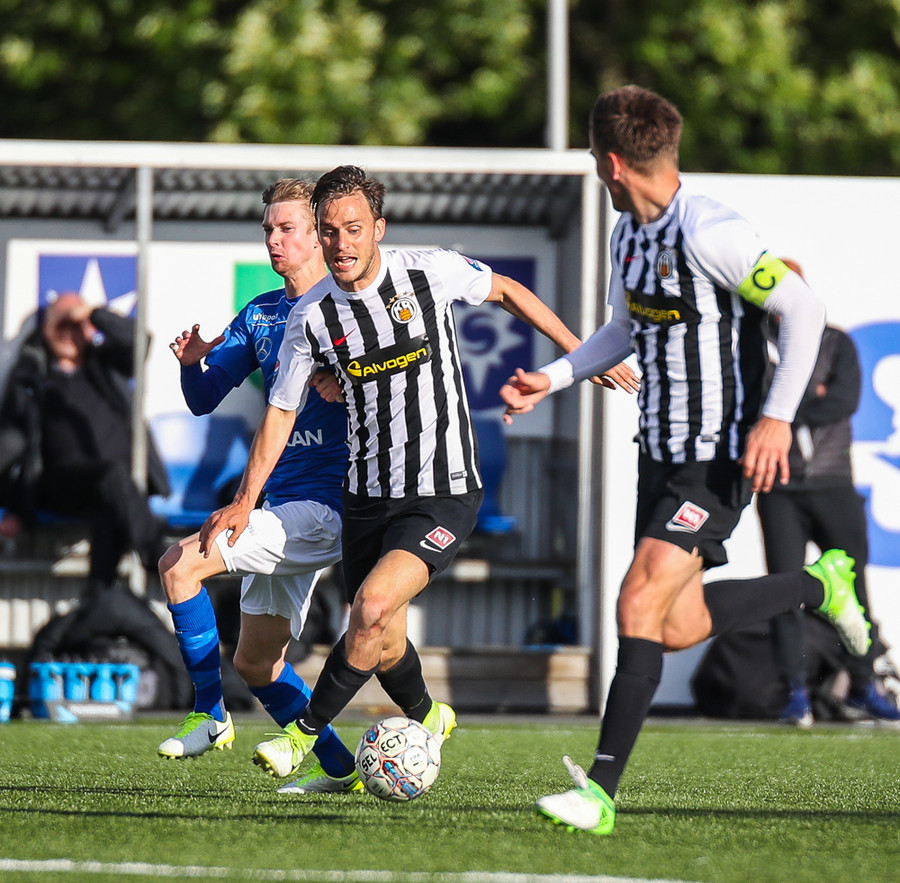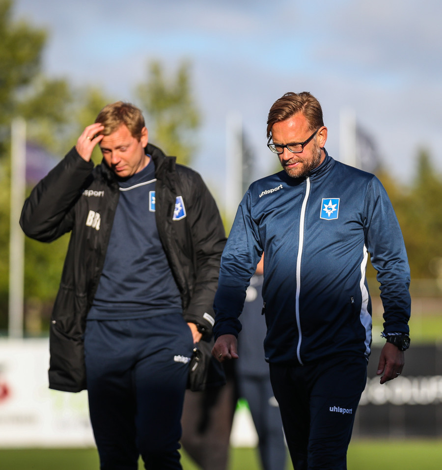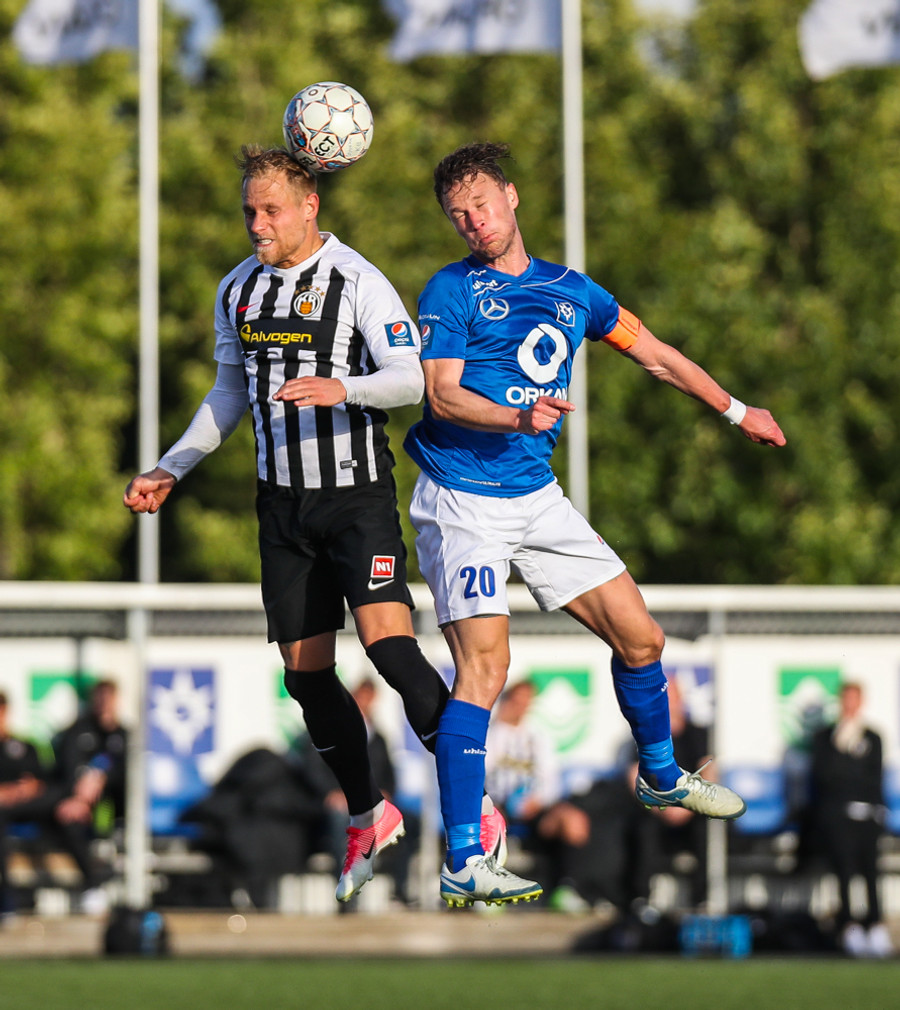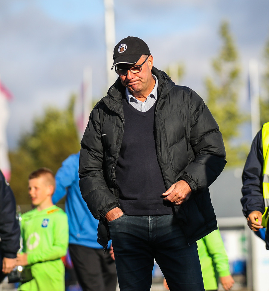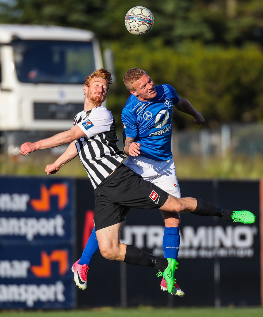 MAAAARKKKKK! Tobias Thomsen skallaði boltanum í markið eftir að Kenny hafði flikkað honum til hans eftir að skalla hann eftir hornspyrnu frá Óskari Erni. Við erum komin með leik!