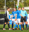 Arnar Gunnlaugsson er rekinn uppí stúku eftir að hafa tekið nettann trylling við gula spjaldið sem Robert Sandnes fékk hér rétt áðan.