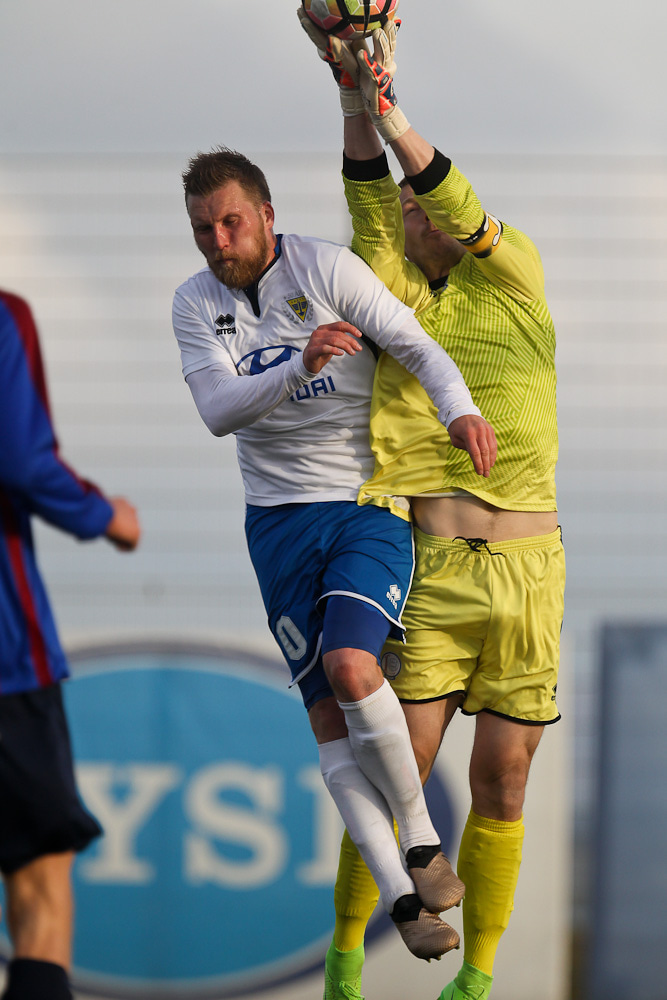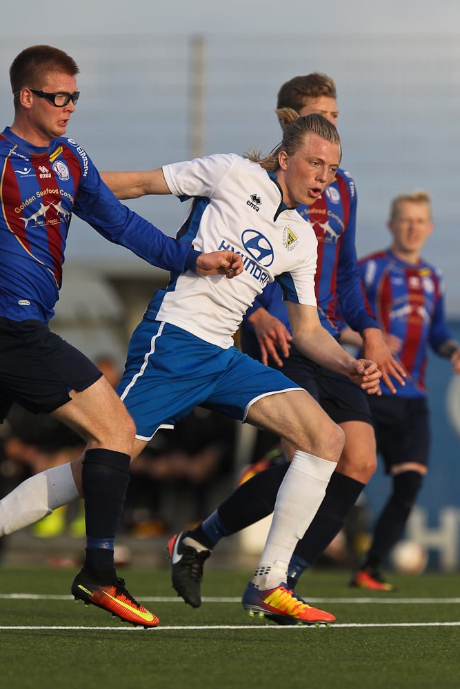 MAAARK! Leiknir að komast yfir! Tómas Óli Garðarsson skorar stöngin inn úr þröngu færi.