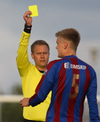 Gult spjald fyrir að sparka boltanum í burtu.