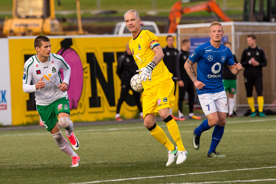 Meðan ég man, ég gerði mistök hér áðan. Hörður Árnason er svo sannarlega í byrjunarliðinu eins og sjá má en það er Daníel Laxdal ekki. Hann er meiddur. Daníel hinsvegar var í liðinu á móti ÍBV.