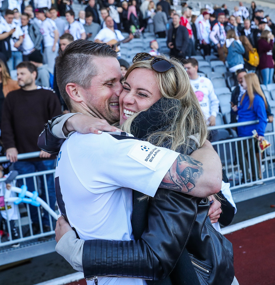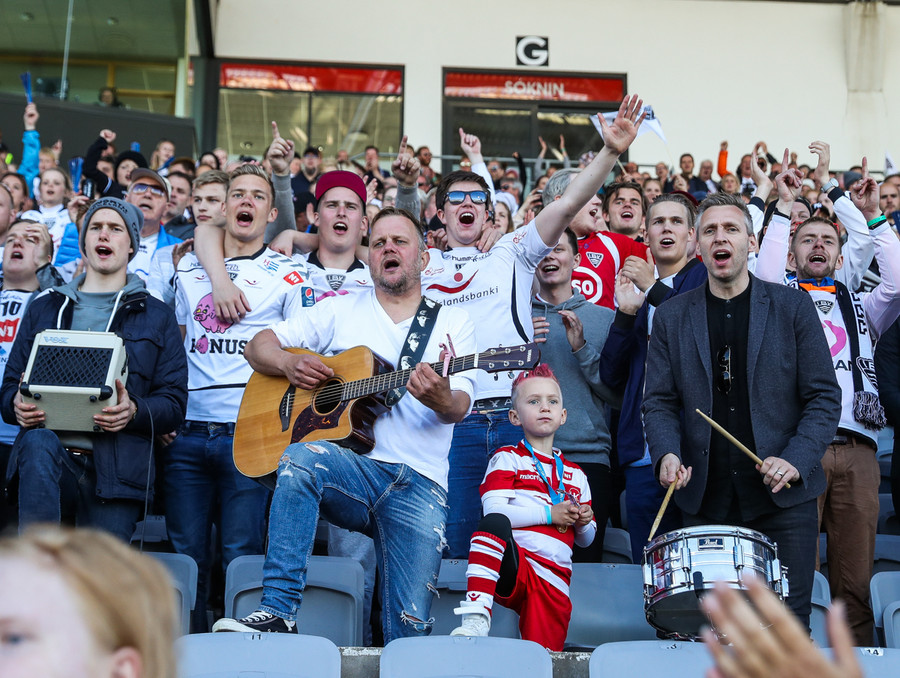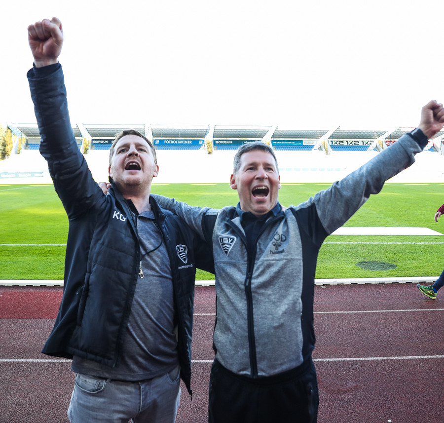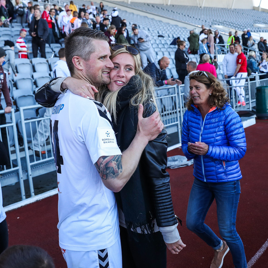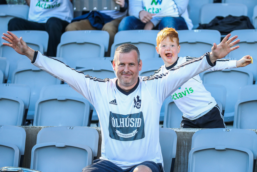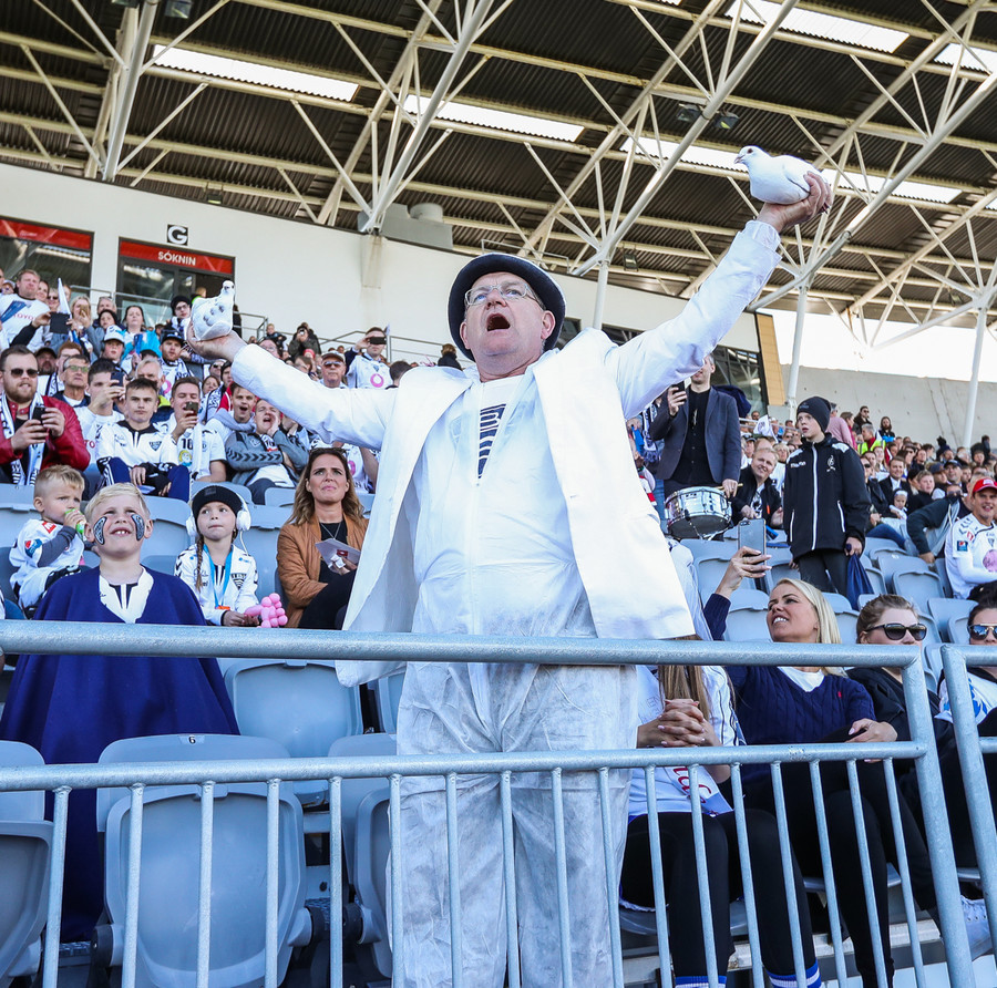 Í stúkunni eru Eyjamenn byrjaðir að syngja Afgan með Bubba.