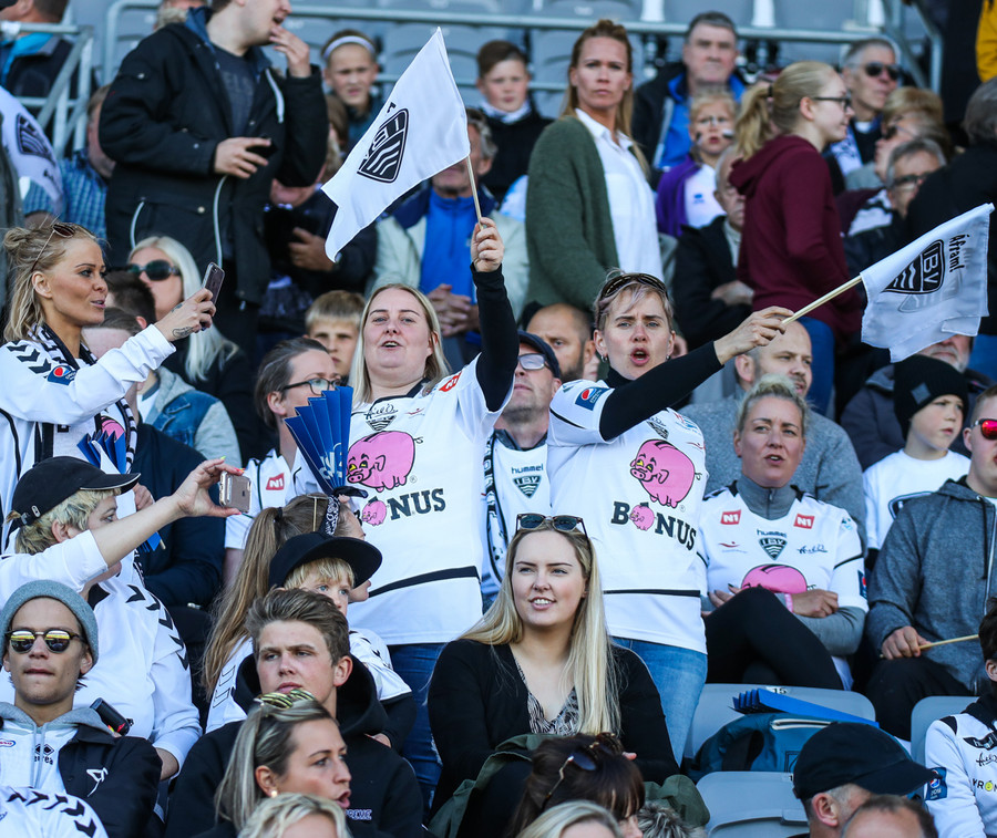Heima úr stofu hljómar eins og Eyjamenn séu gjörsamlega PAKKA mönnum saman í stúkunni.