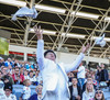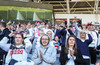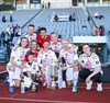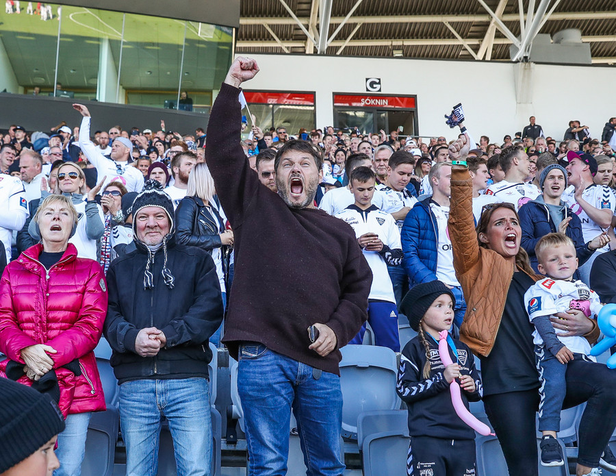 Eyjamenn tryllast úr fögnuði í stúkunni.