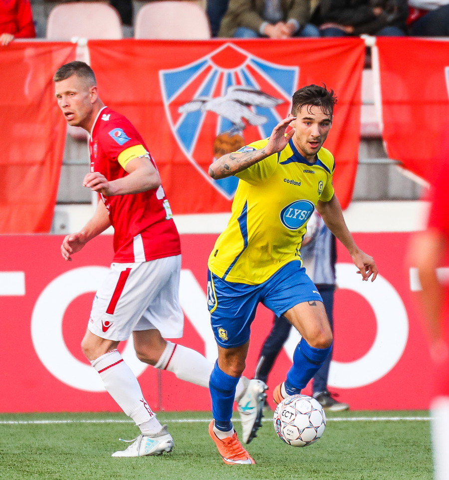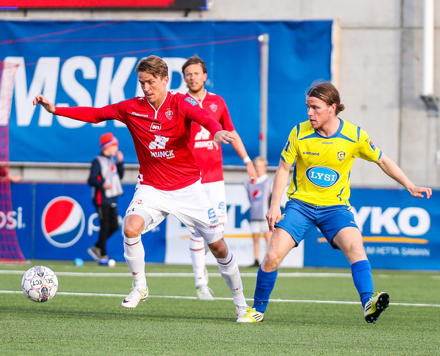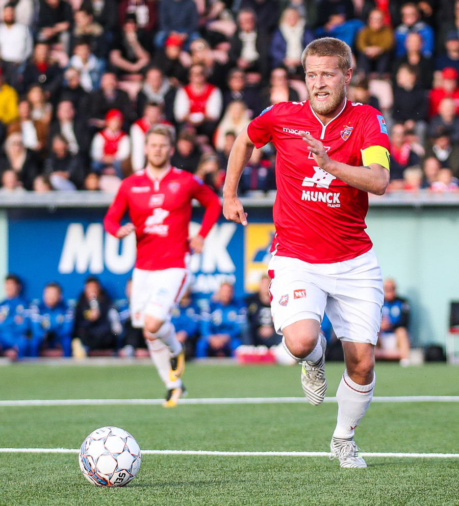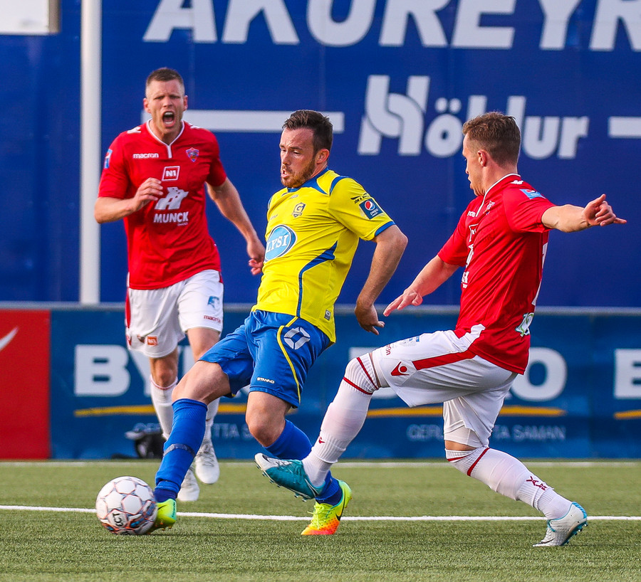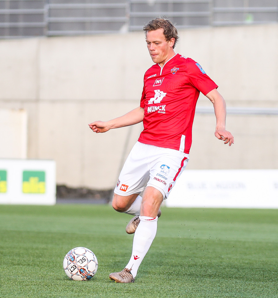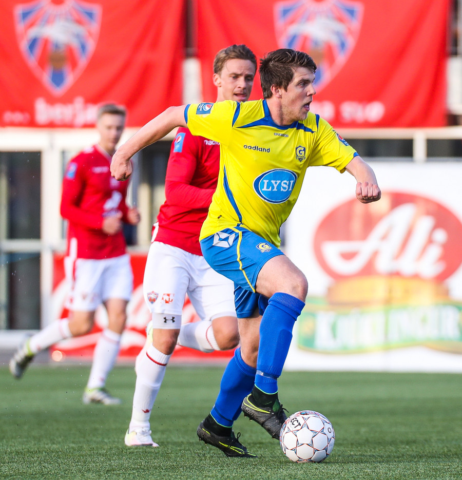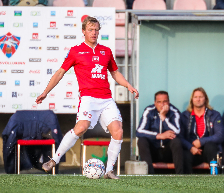 Will Daniels stimplar sig strax inn með hörkusprett. Eiður Aron stöðvar för hans þó á endanum.