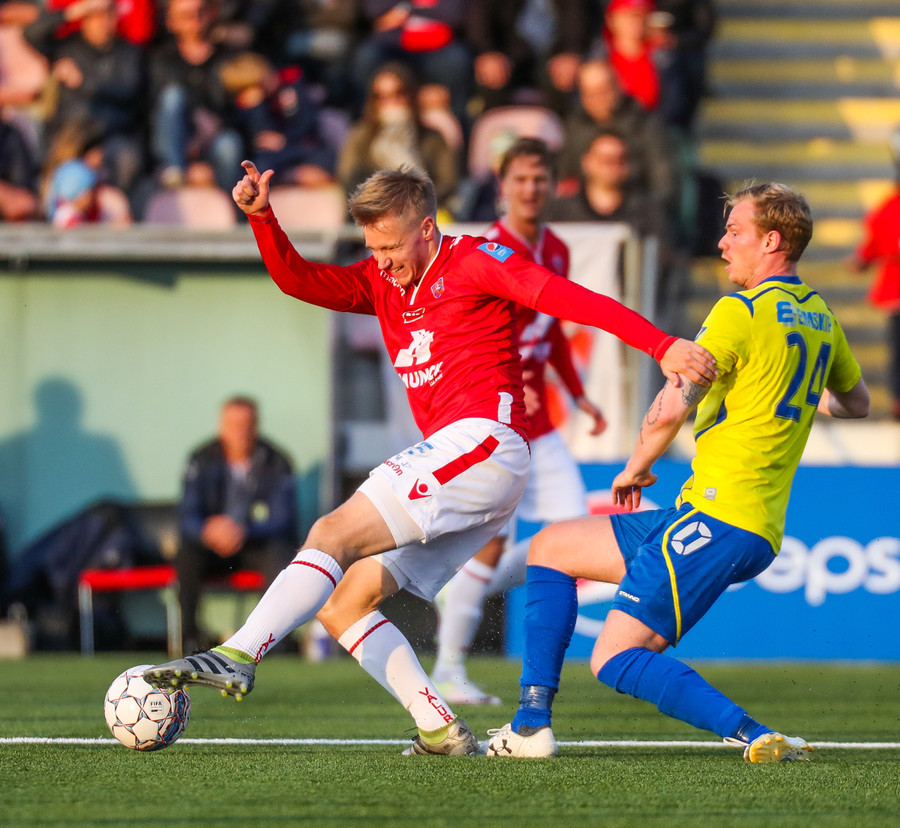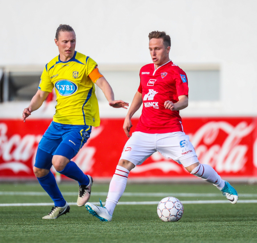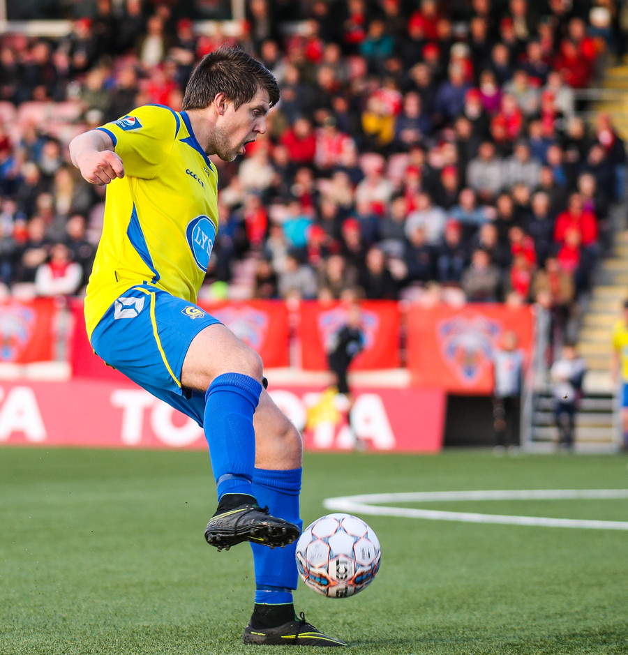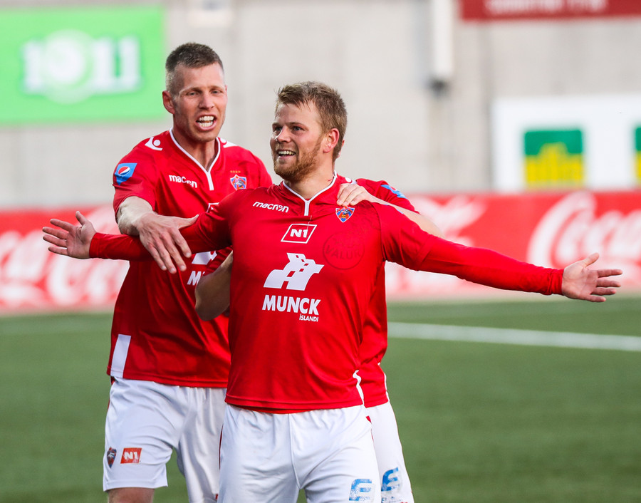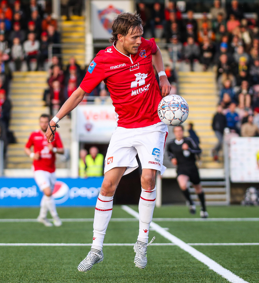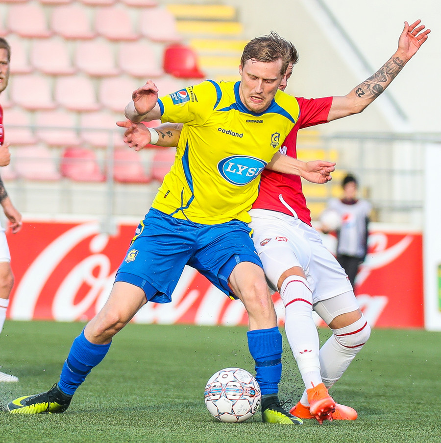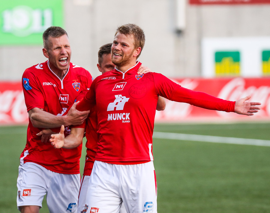 Will Daniels stimplar sig strax inn með hörkusprett. Eiður Aron stöðvar för hans þó á endanum.