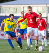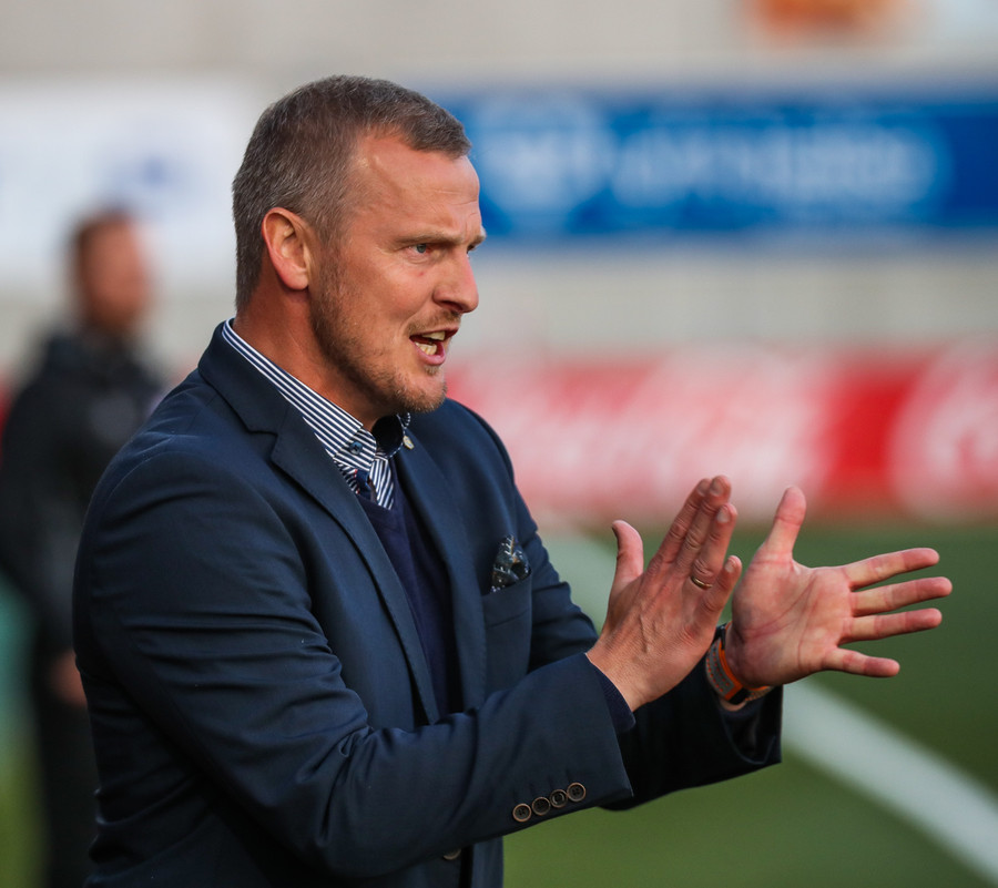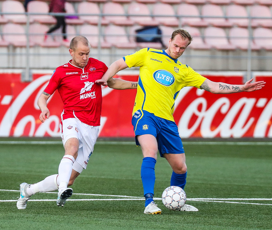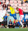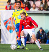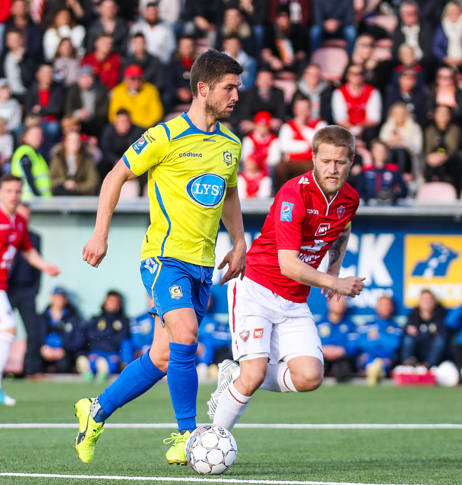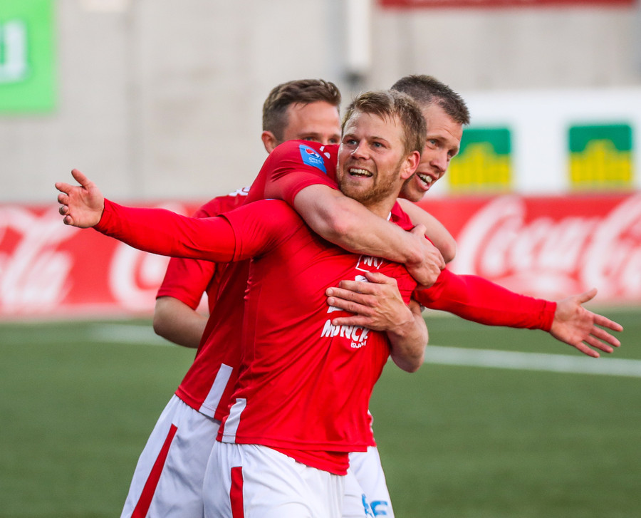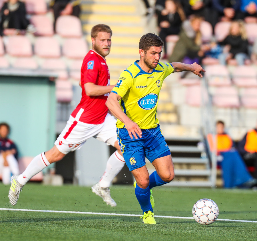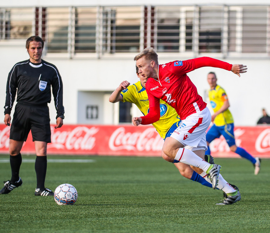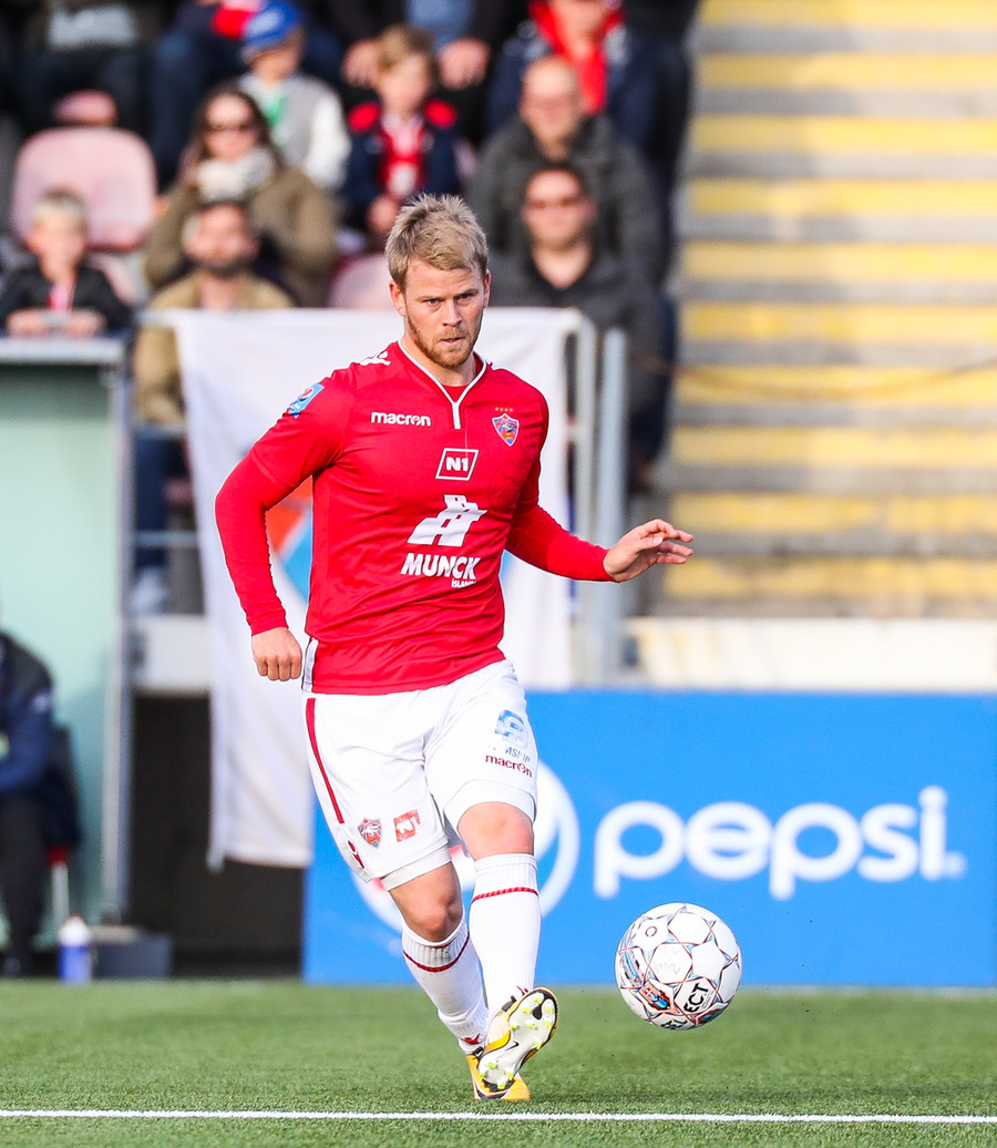 Will Daniels stimplar sig strax inn með hörkusprett. Eiður Aron stöðvar för hans þó á endanum.