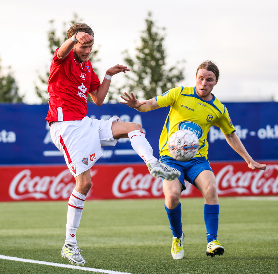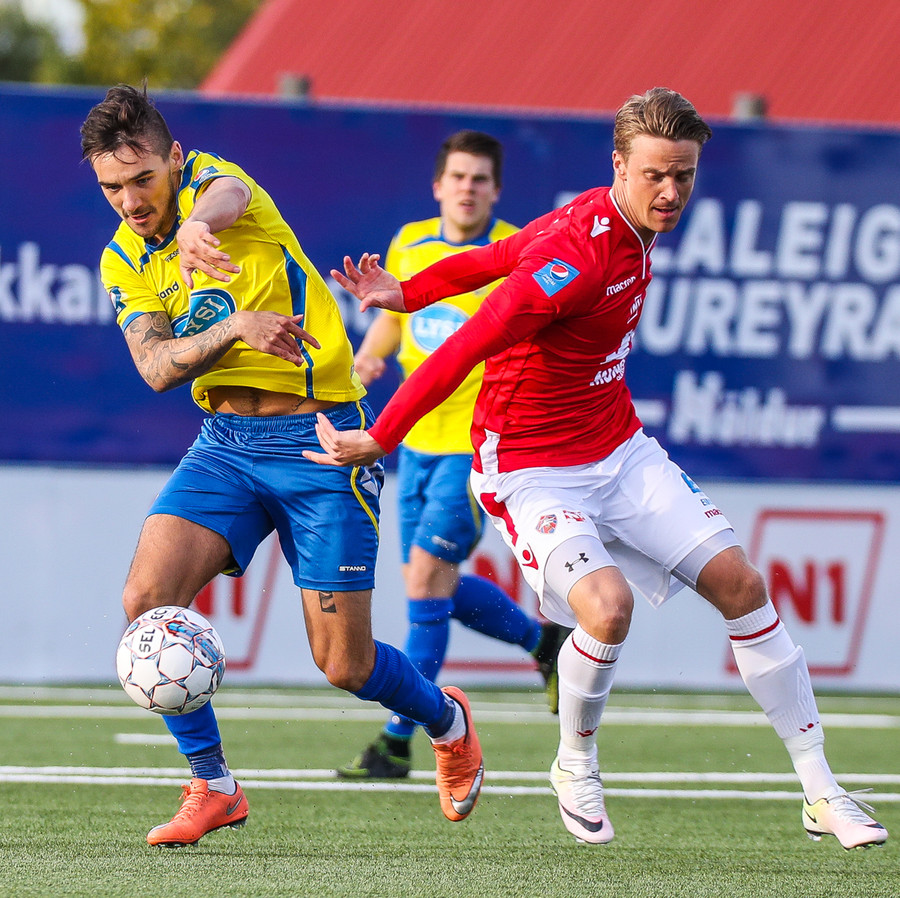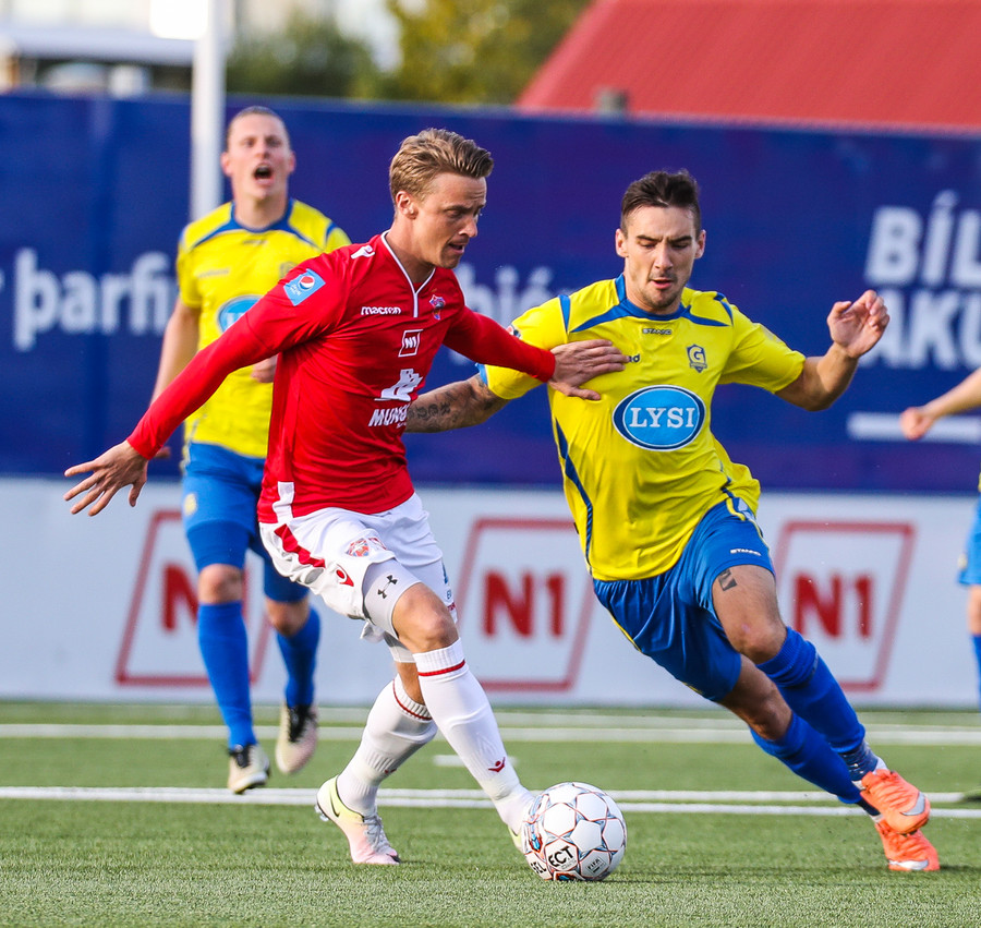 Guðjón Pétur nálægt því að senda Bögild í gegn en Brynjar Ásgeir bjargar á síðustu stundu!