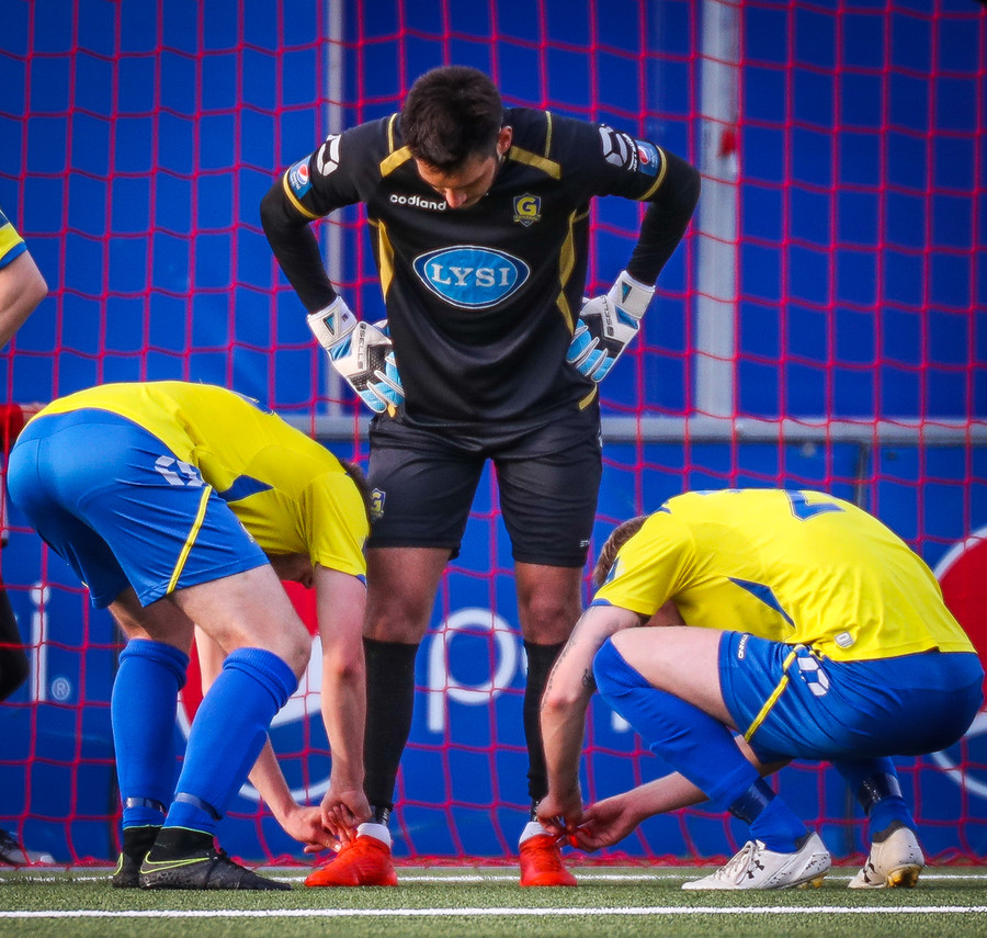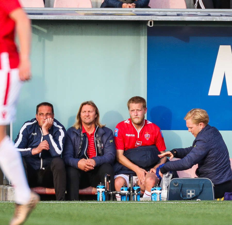 Andri Fannar kemur inn á. Sindri Björnsson hefur yfirleitt leyst Hauk Pál af hólmi í sumar en ekki núna. Sindri er í eldgömlum strigaskóm á bekknum og virðist ekki vera líklegur til að koma inn á í dag. Er víst að glíma við meiðsli.