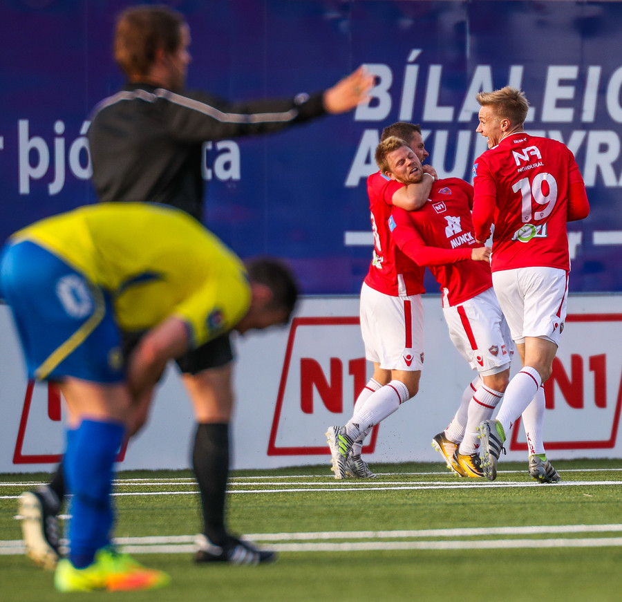 Einar Karl skorar með laglegu skoti frá vítateigslínu. Einar Karl fær lága sendingu af vinstri kantinum frá Bjarna og þakkaði fyrir sig með því að skora með þrumuskoti frá vítateigslínu.