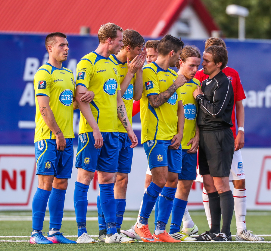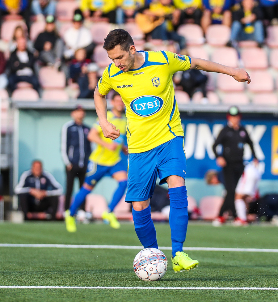 Aukaspyrna inn á teiginn sem Jajalo kýlir burt. Einar Karl fær boltann í vítateigsboganum og á skot framhjá. Jajalo liggur eftir og vill fá aukaspyrnu en Jarlinn hlustar ekki á það.