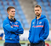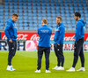 Íslensku leikmennirnir hafa nú lokið upphitun og flykkjast hver af öðrum inní búningsklefa.