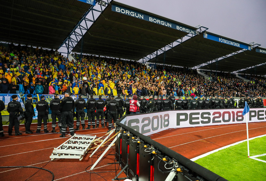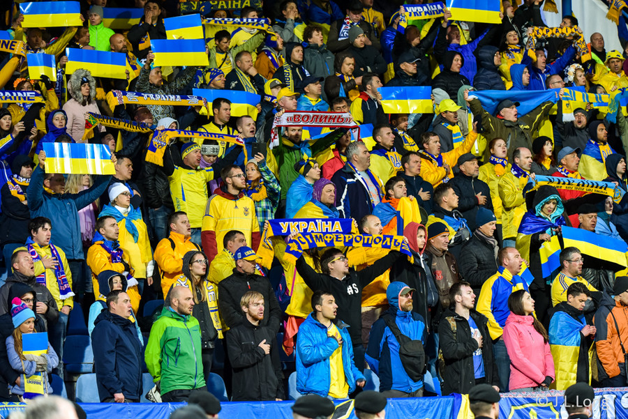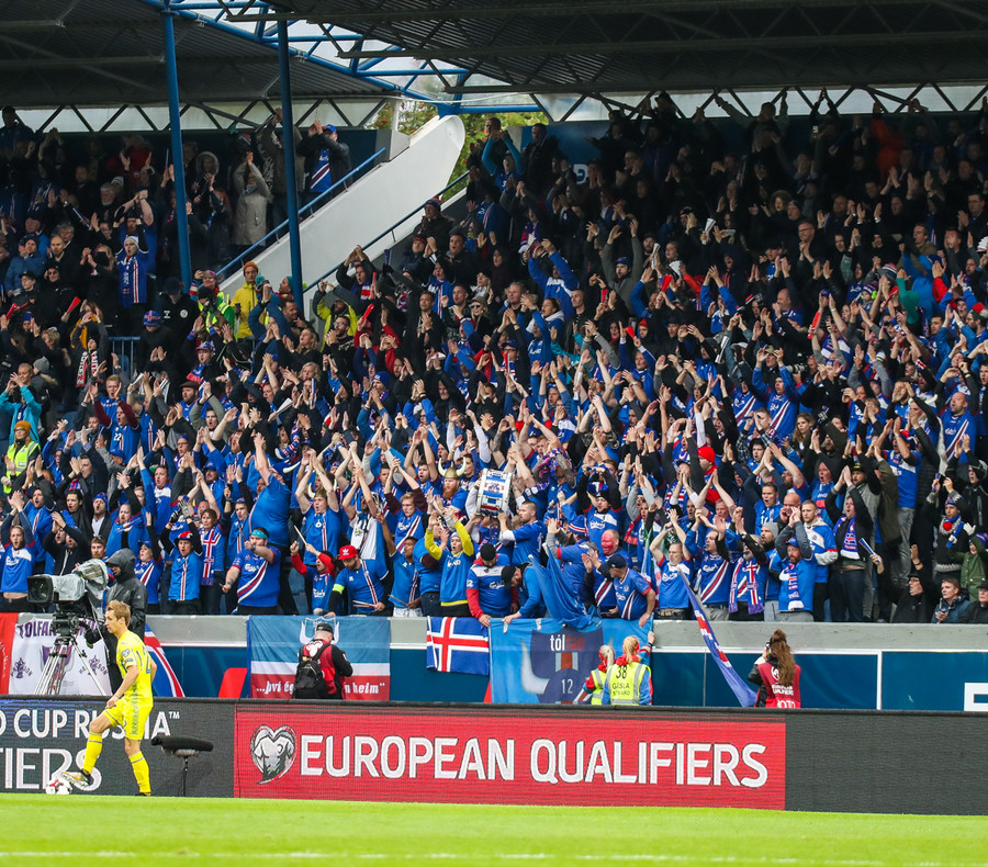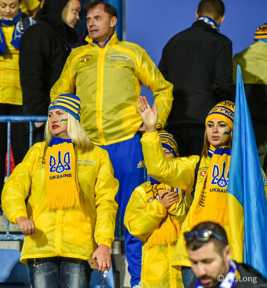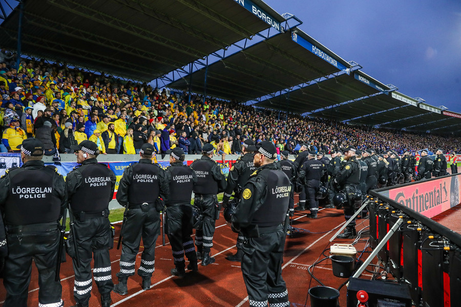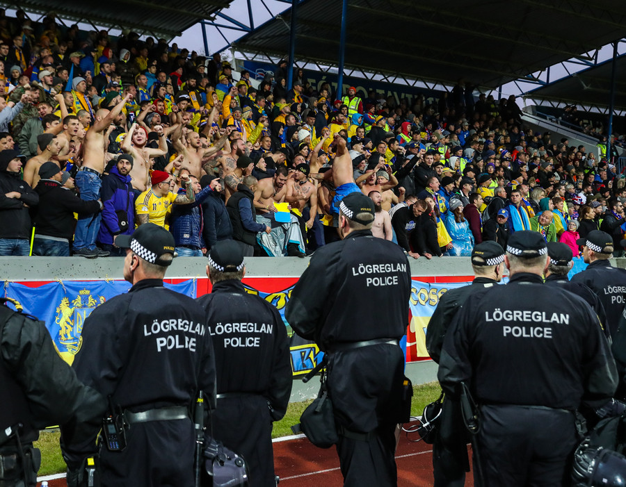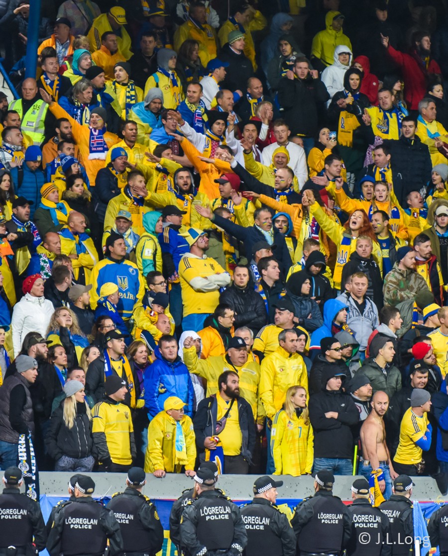Af þeim 10 þúsund áhorfendur sem verða á Laugardalsvelli í kvöld verða um það bil 900 stuðningsmenn Úkraníu.